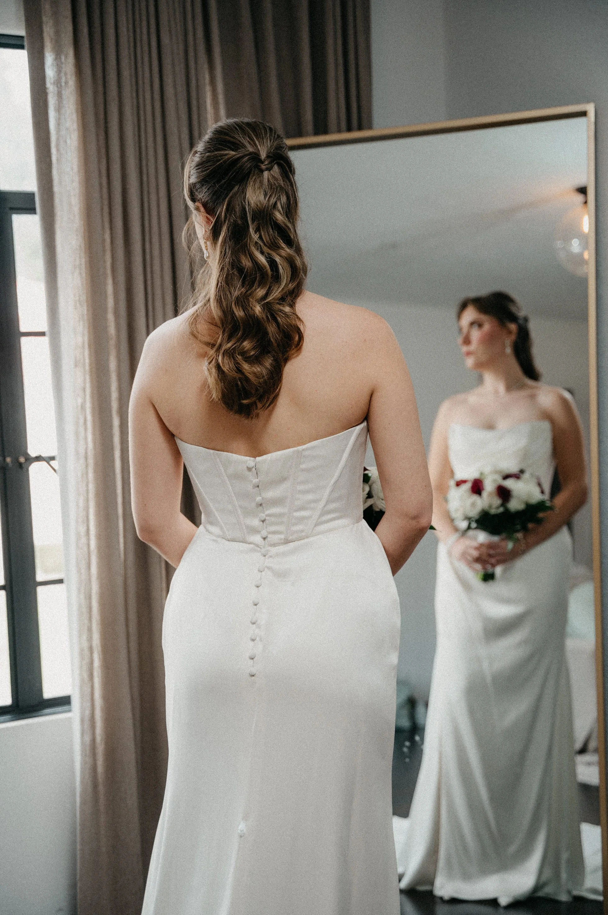 Joshua and Michaela chose to get ready on-site, which made the day feel calm and efficient. Michaela got ready upstairs while Joshua and the guys prepped downstairs—ideal for avoiding overlap while keeping everything close and convenient for photography coverage.