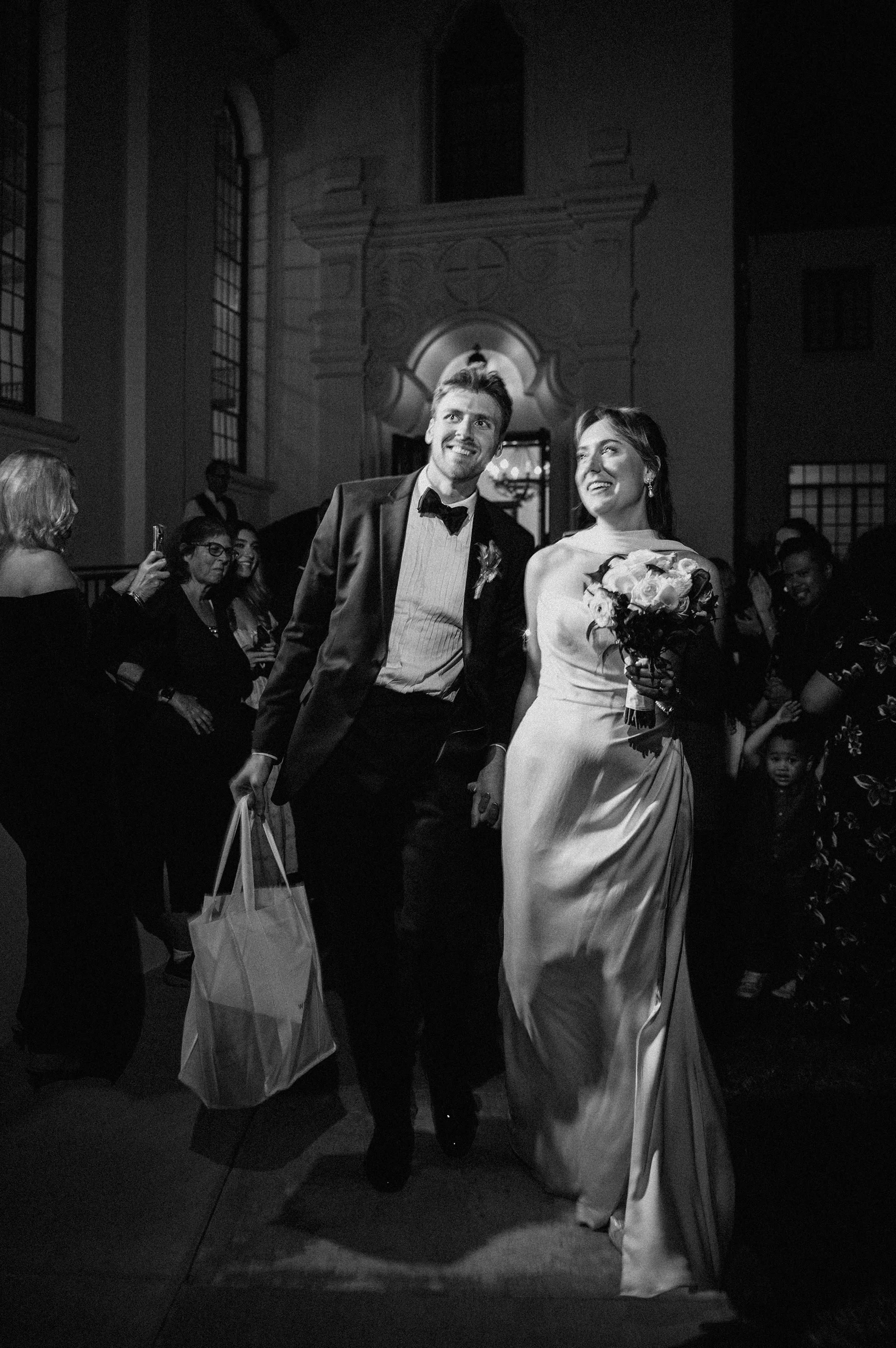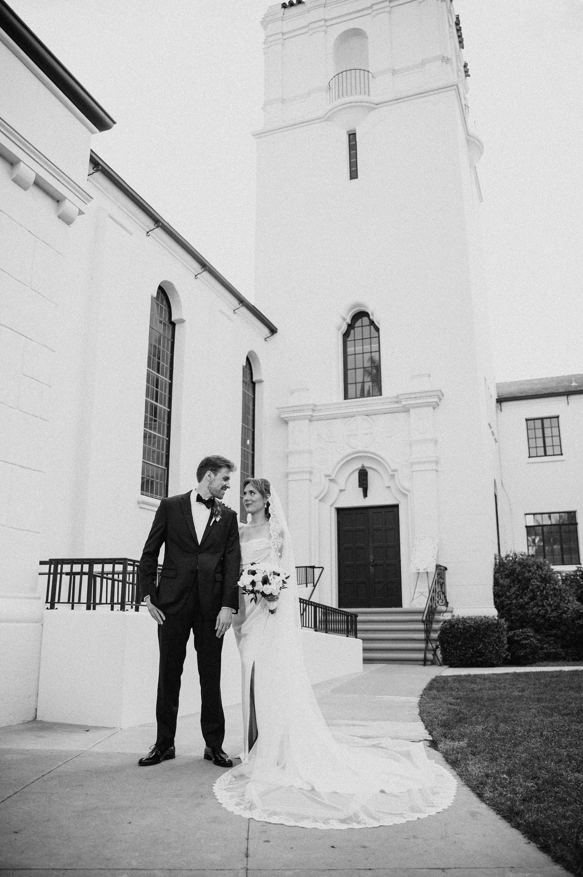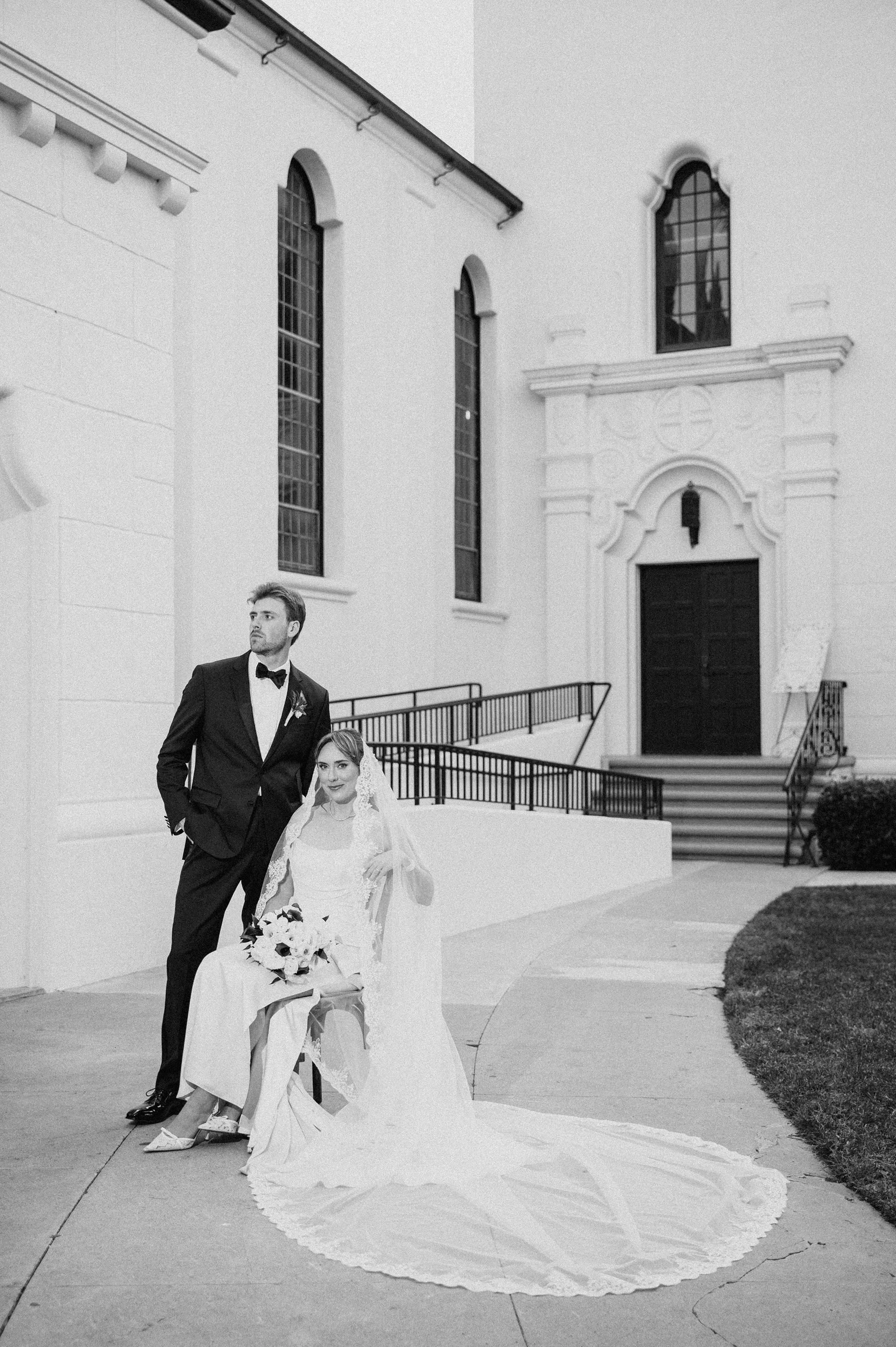 Joshua and Michaela wanted their wedding photos to feel classic and old-timey, inspired by a timeless, Frank Sinatra-style vibe. To match that vision, their gallery includes a blend of black-and-white wedding photography and a film-inspired editing approach that feels romantic, nostalgic, and elegant—perfect for a chapel wedding setting.
