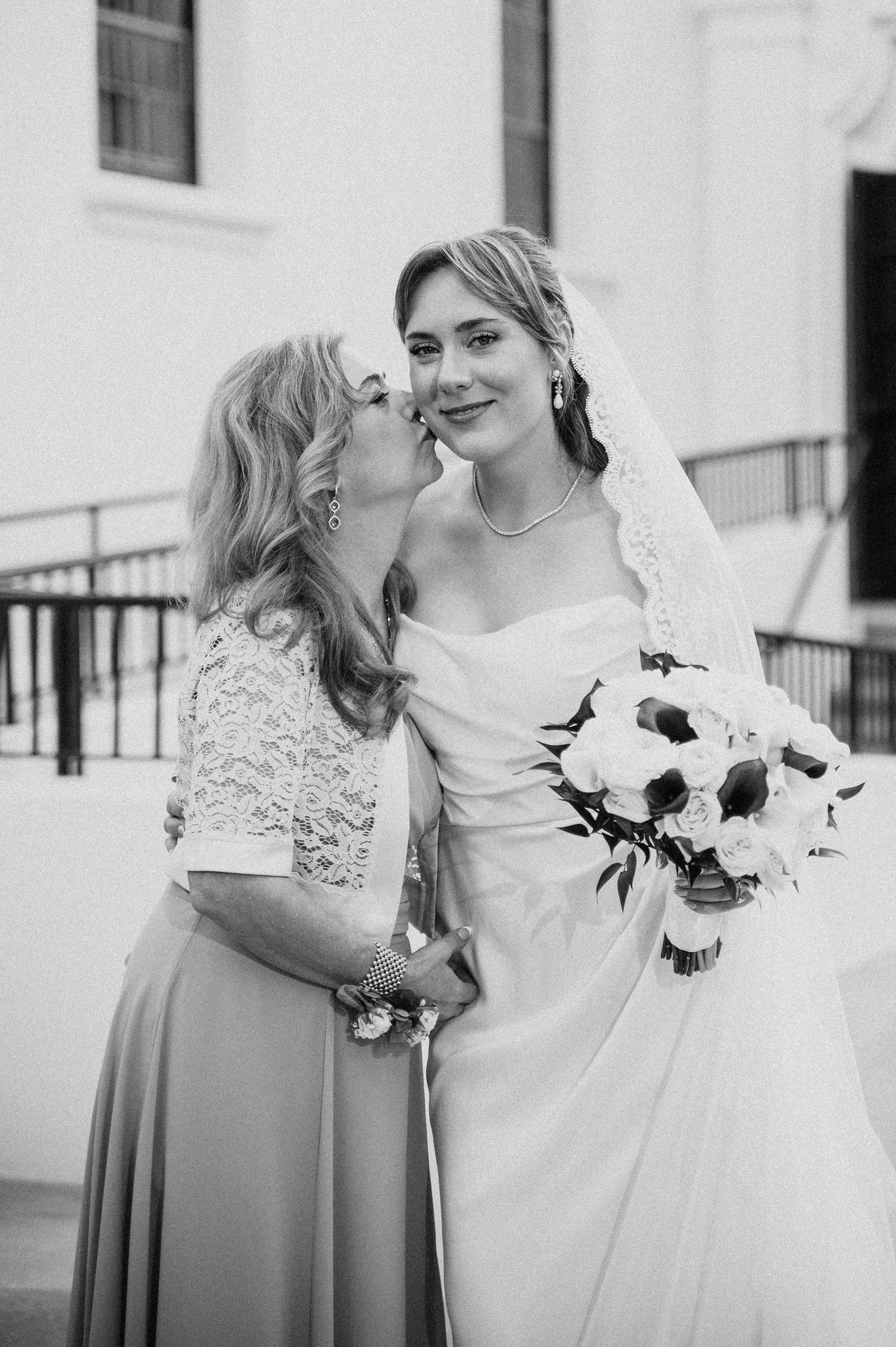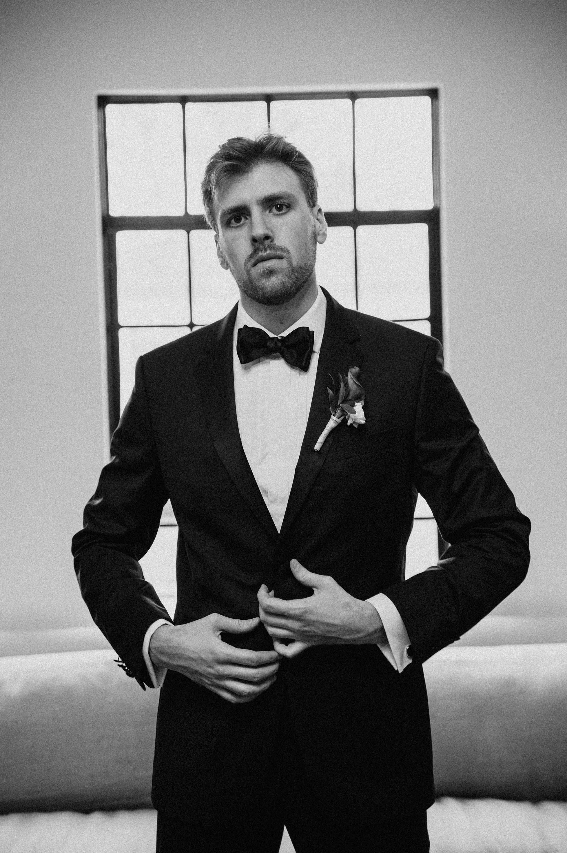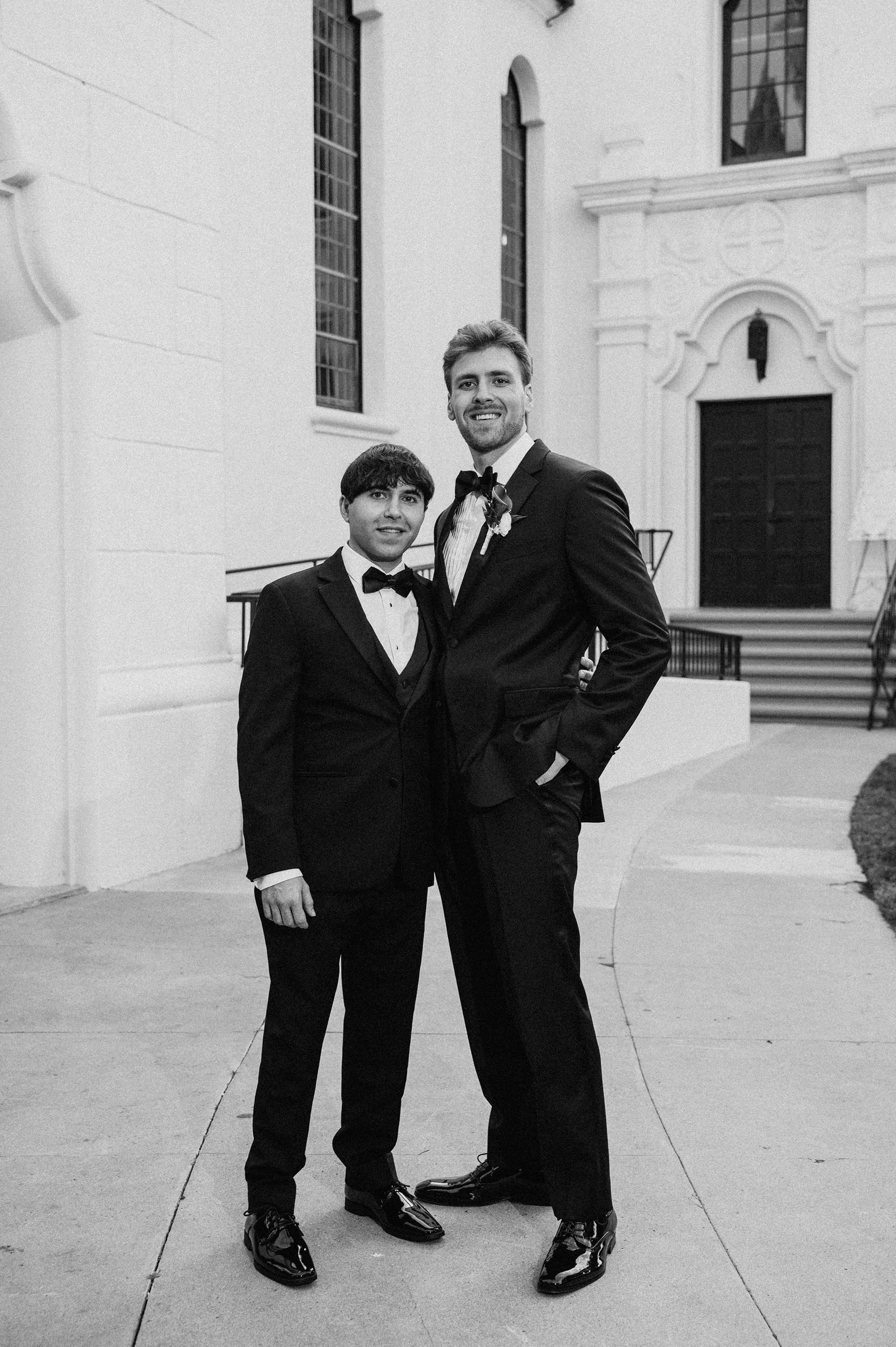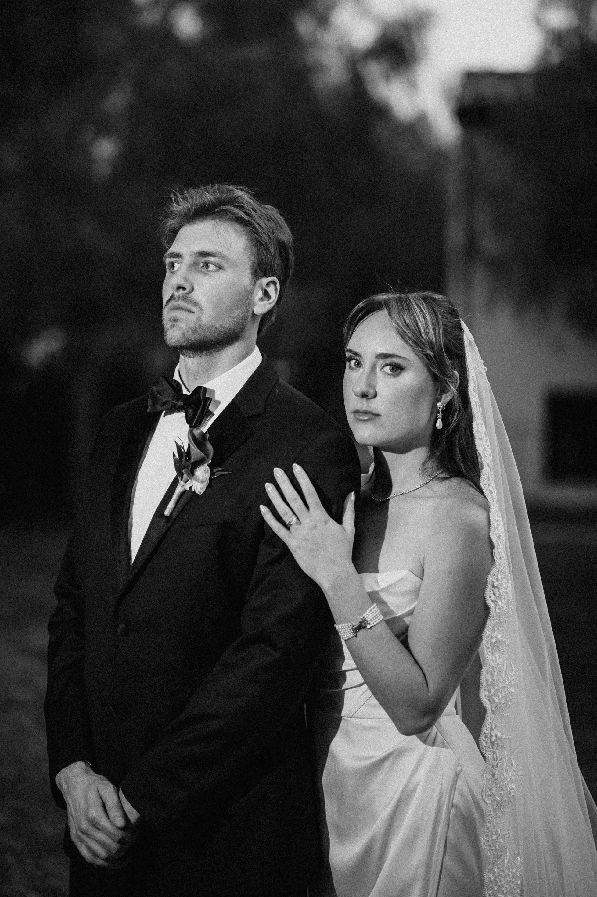 Joshua and Michaela wanted their wedding photos to feel classic and old-timey, inspired by a timeless, Frank Sinatra-style vibe. To match that vision, their gallery includes a blend of black-and-white wedding photography and a film-inspired editing approach that feels romantic, nostalgic, and elegant—perfect for a chapel wedding setting.