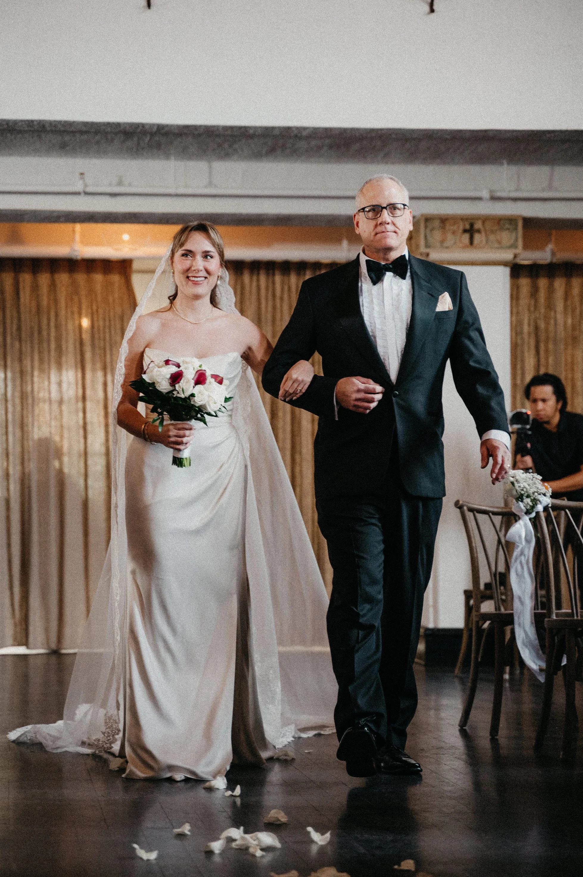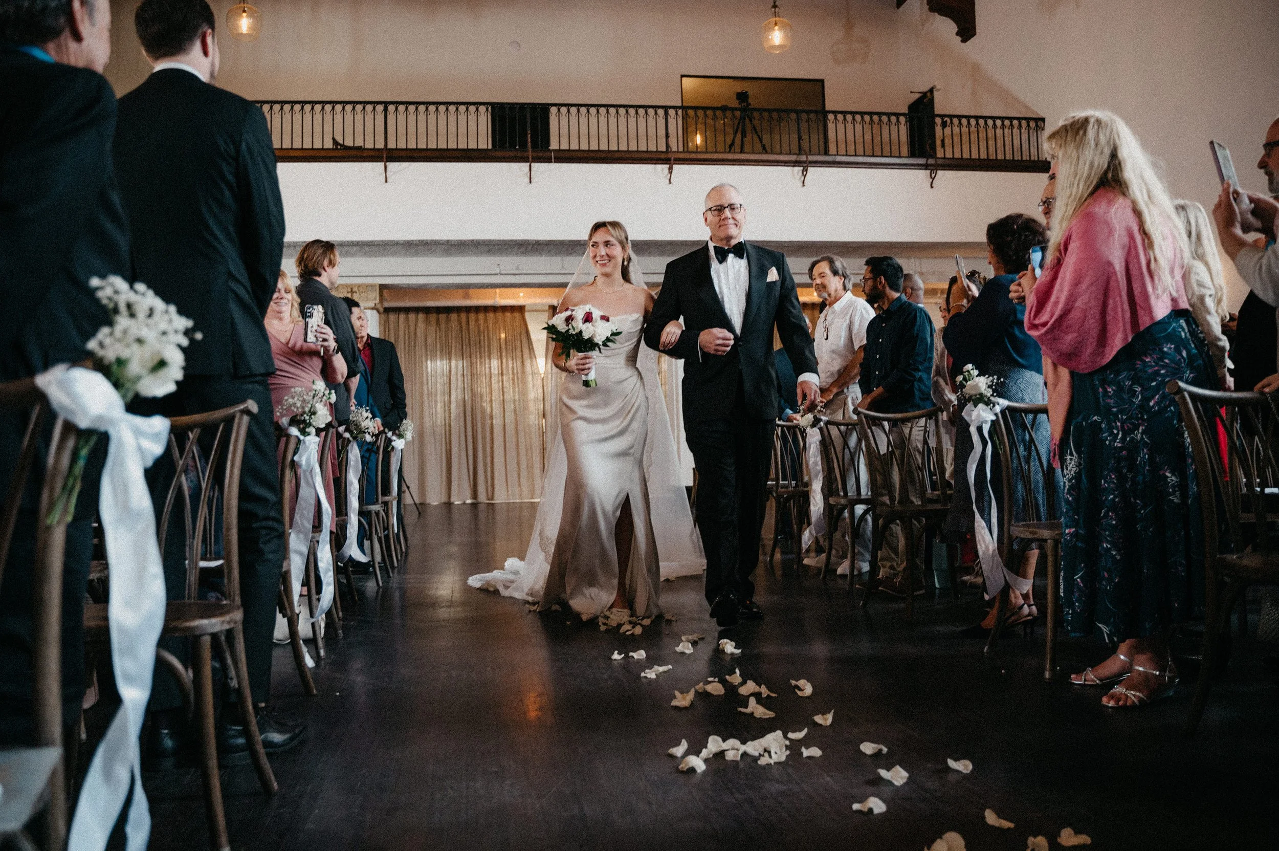 This style works especially well at venues like Fillmore Chapel because the architecture, indoor lighting, and ceremony environment already support that timeless feel.