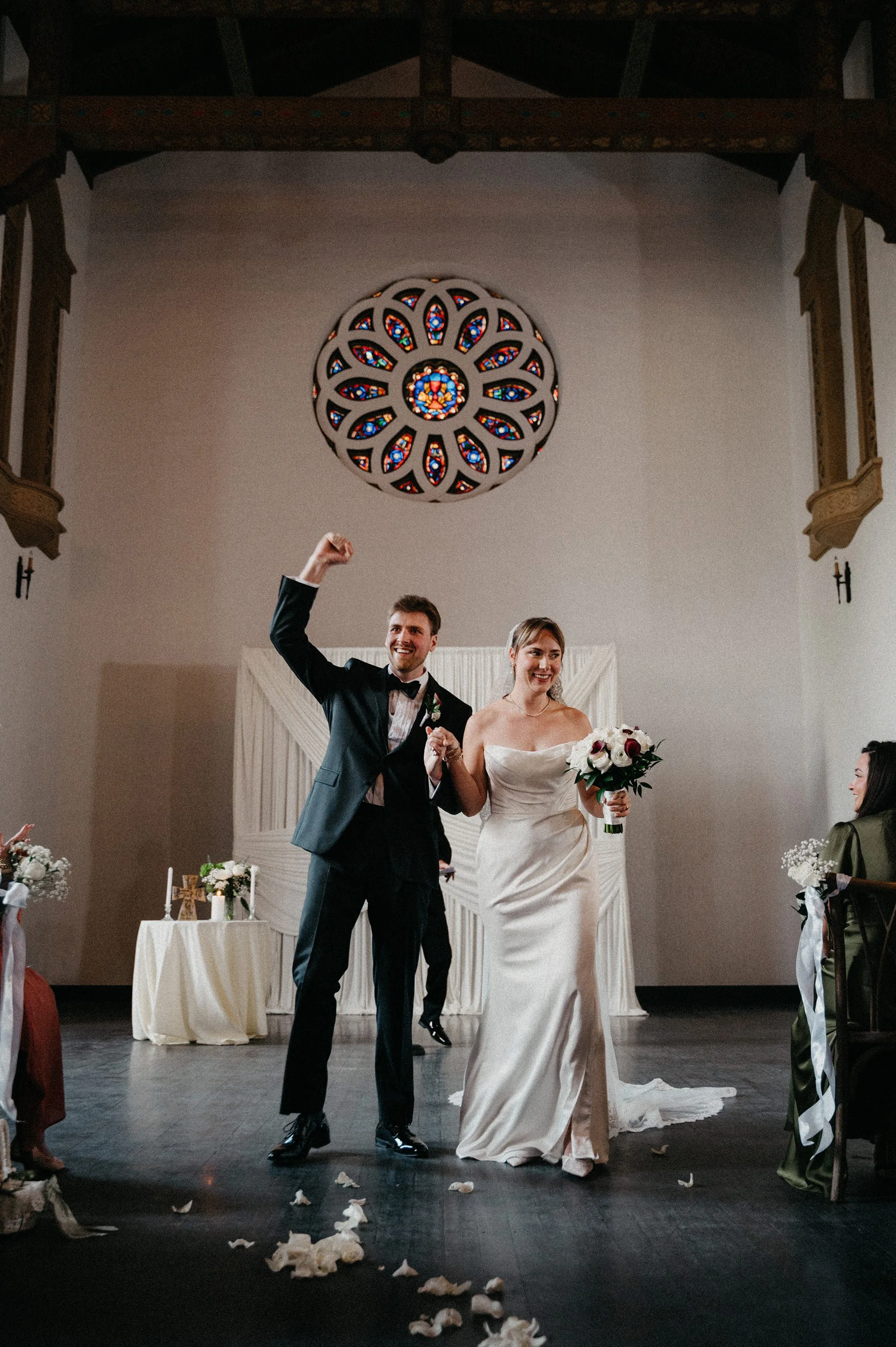 One of the biggest advantages of the Fillmore Chapel is how well it supports a smooth wedding timeline—especially for couples who want the ceremony and reception in one place. On this day, it was 85 degrees outside, and having an air-conditioned indoor ceremony created the perfect environment for guests to stay comfortable while still enjoying a space that feels elegant, intimate, and sacred.