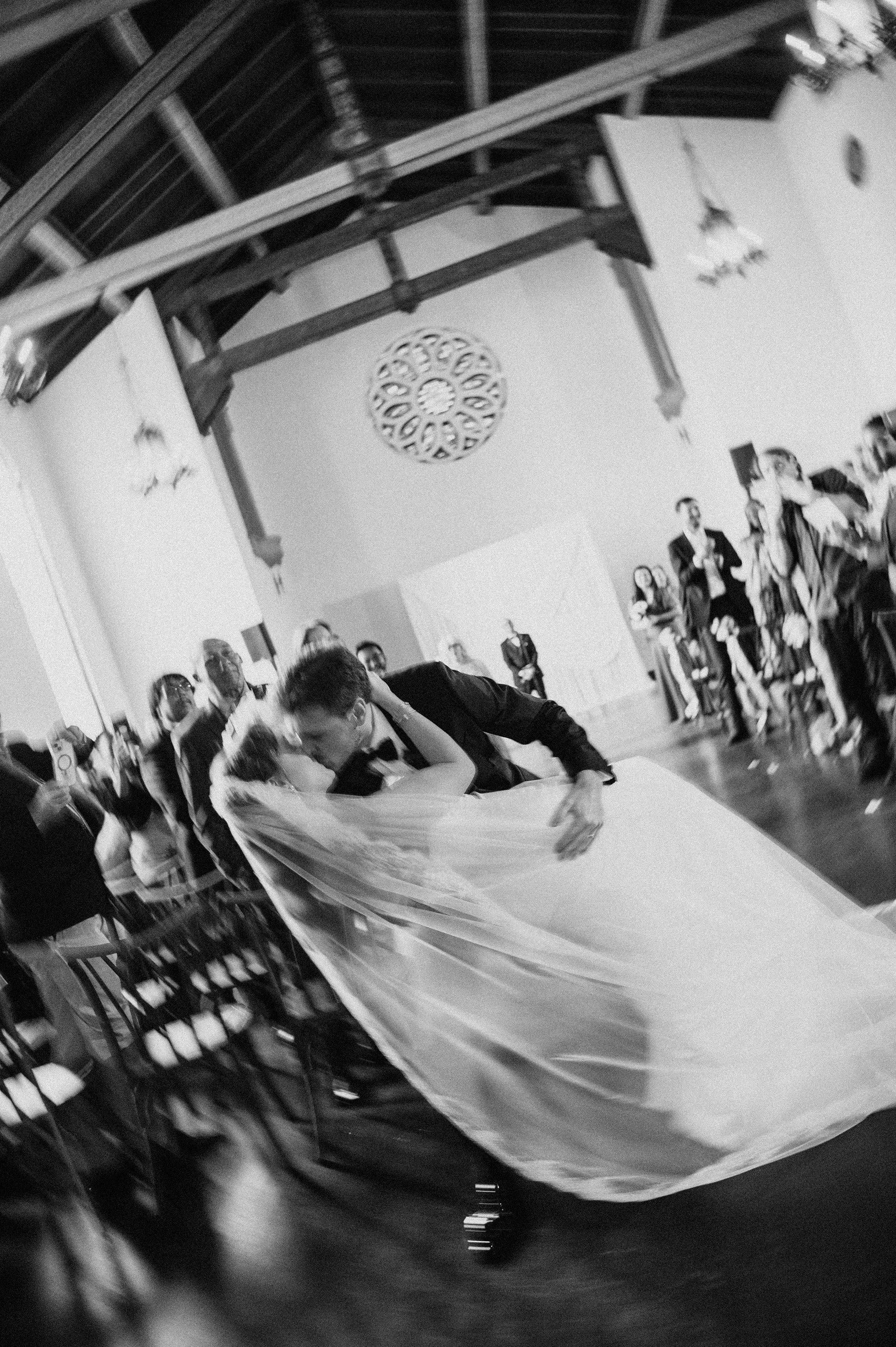 After Michaela and Nick kissed, they walked halfway down the aisle and Nick spun her into a dip — a big, fun “this is so us” moment that brought the whole room to life and gave us an incredible ending sequence to the ceremony set.
