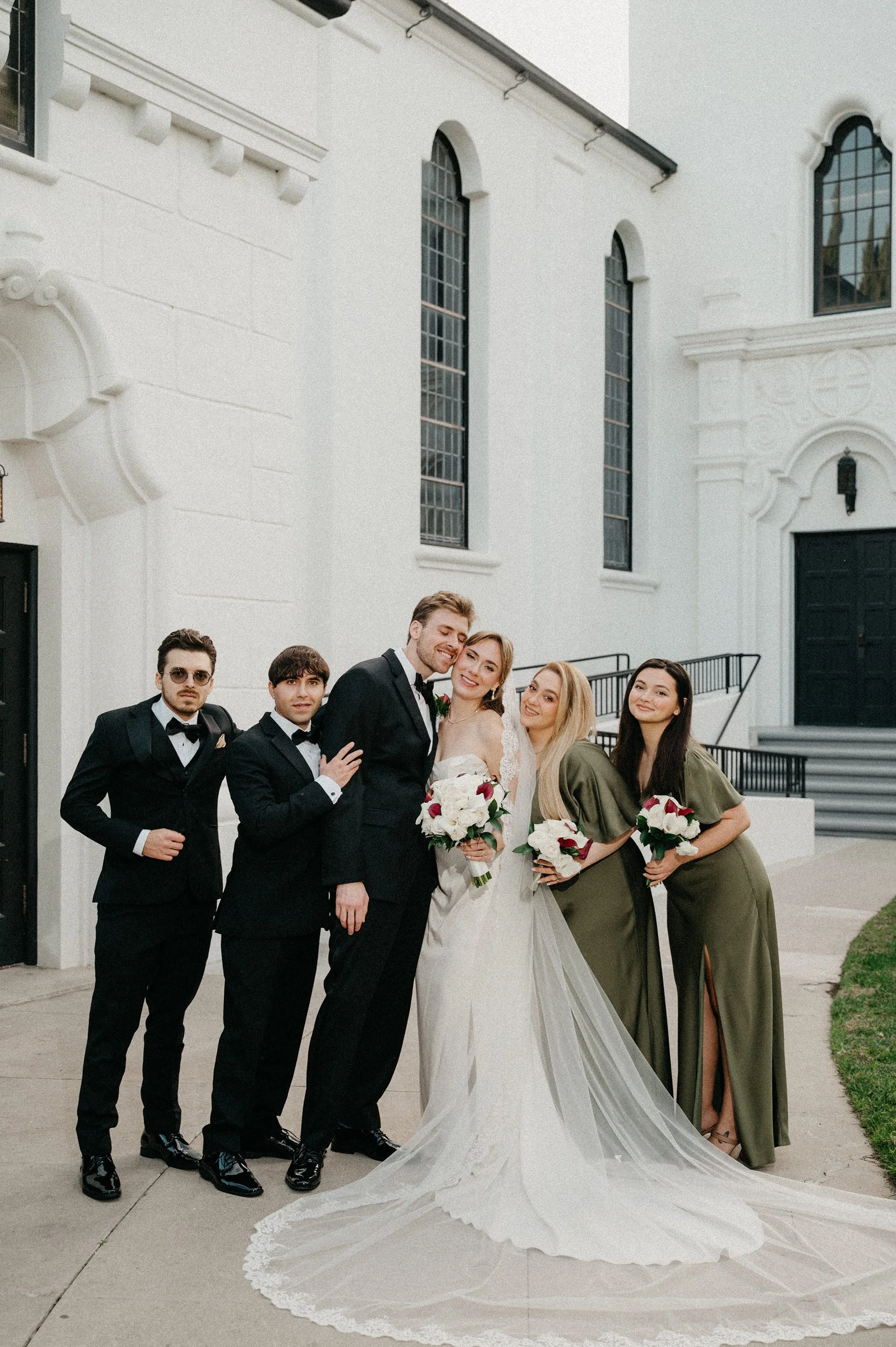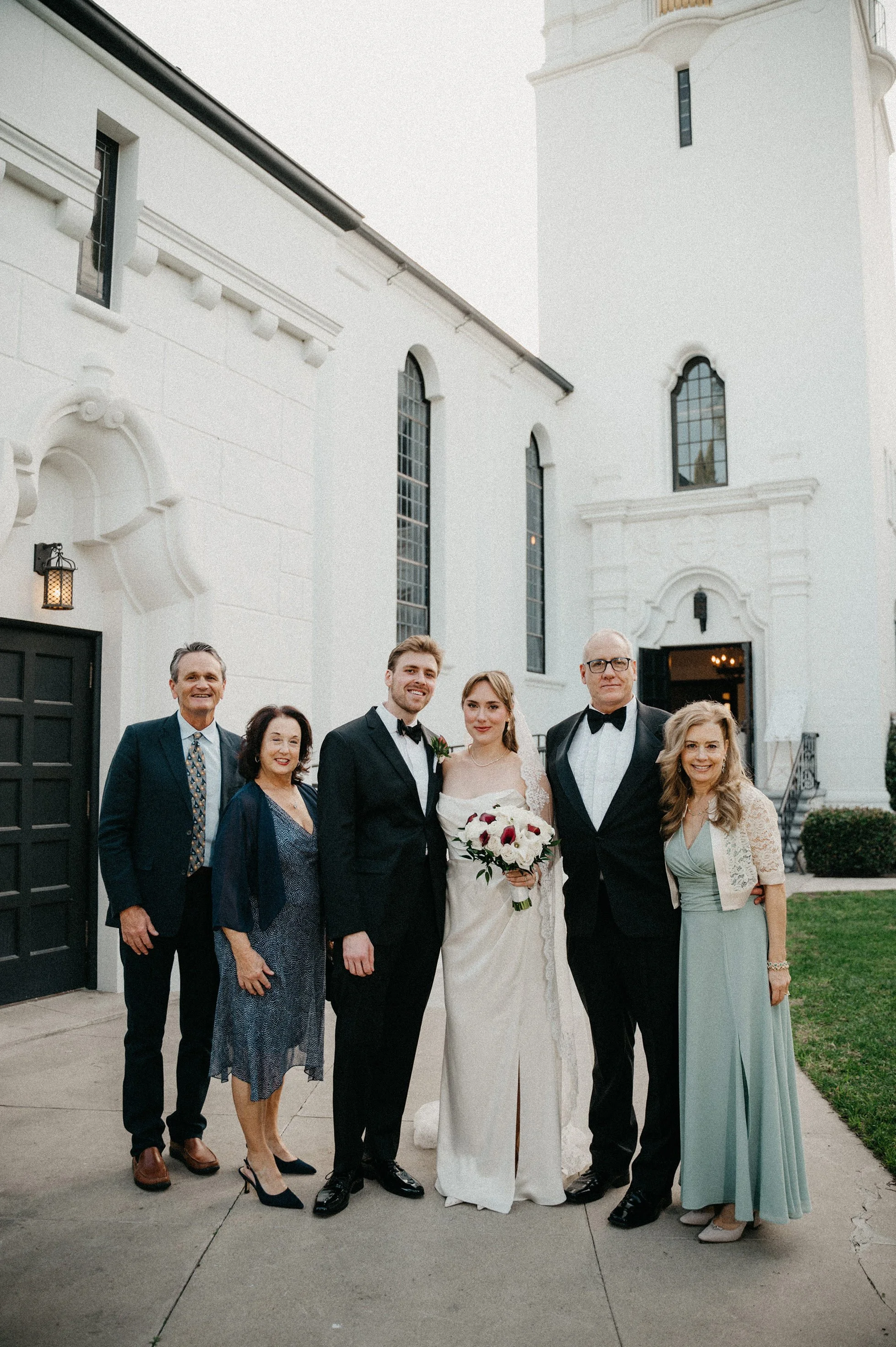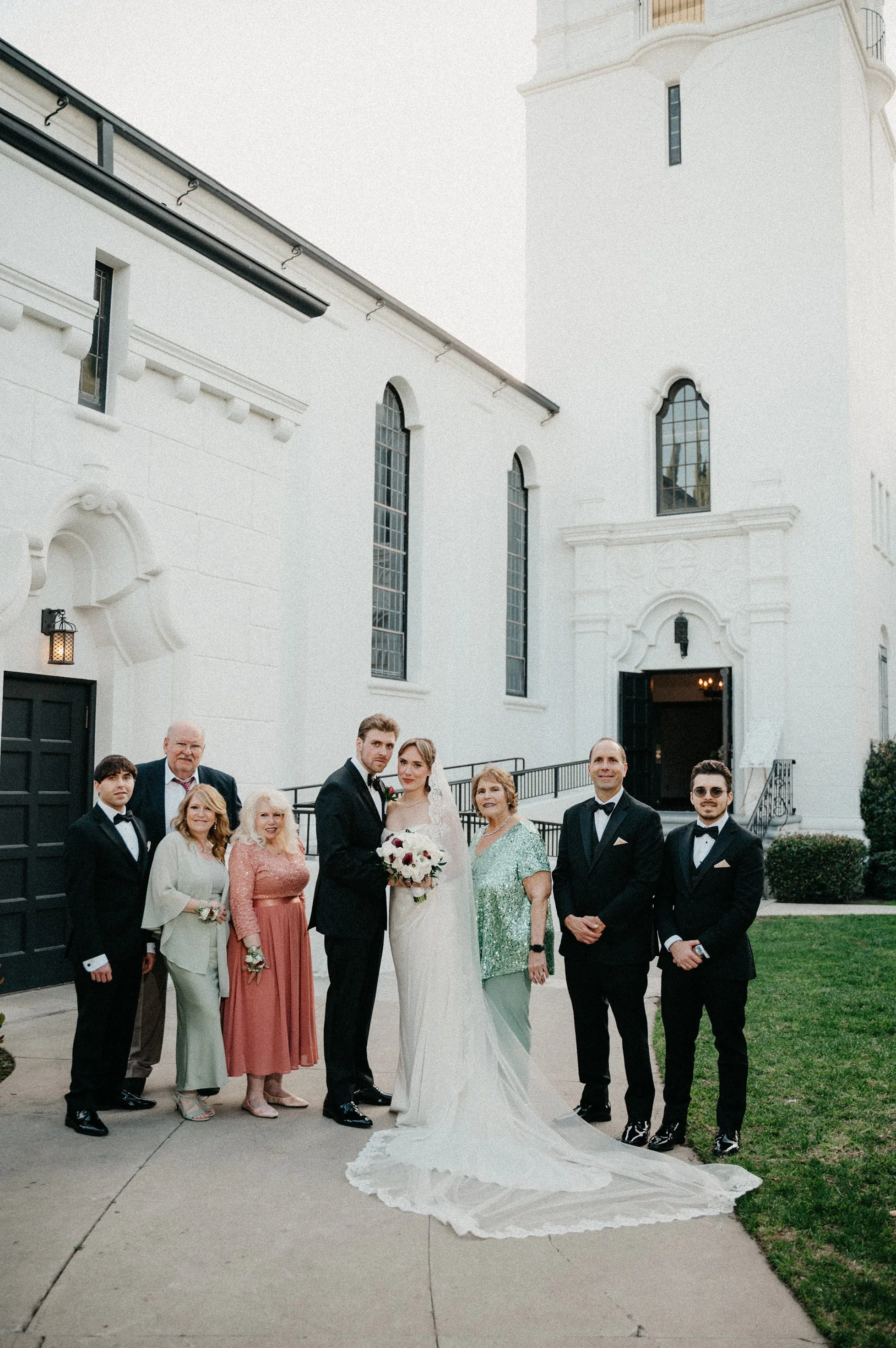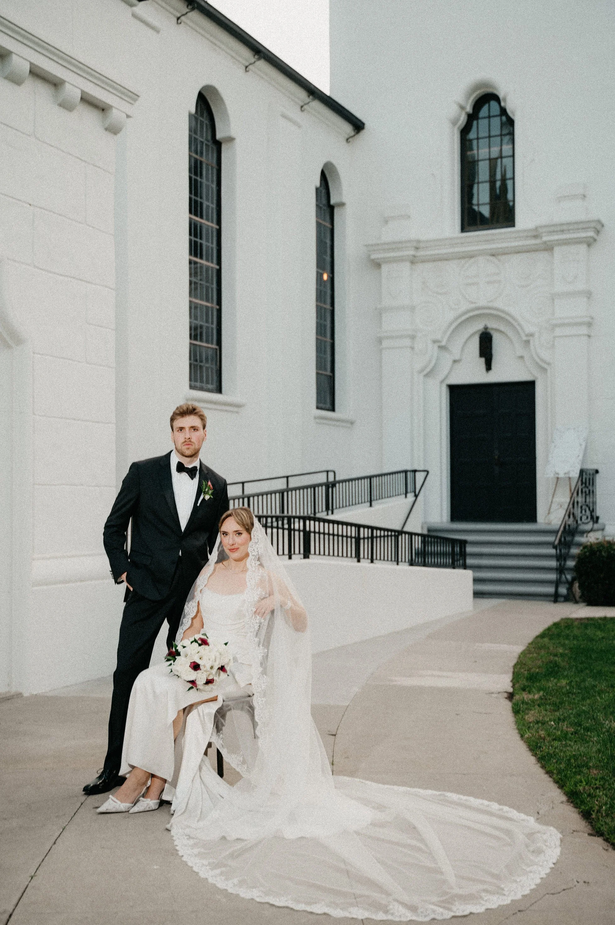 After the ceremony, we captured family photos, wedding party portraits, and romantic couple portraits around the chapel property. One of the best things about photographing weddings at Fillmore Chapel is the variety of backdrops: clean indoor spaces, classic lines, and architectural details that stay beautiful in every season.
