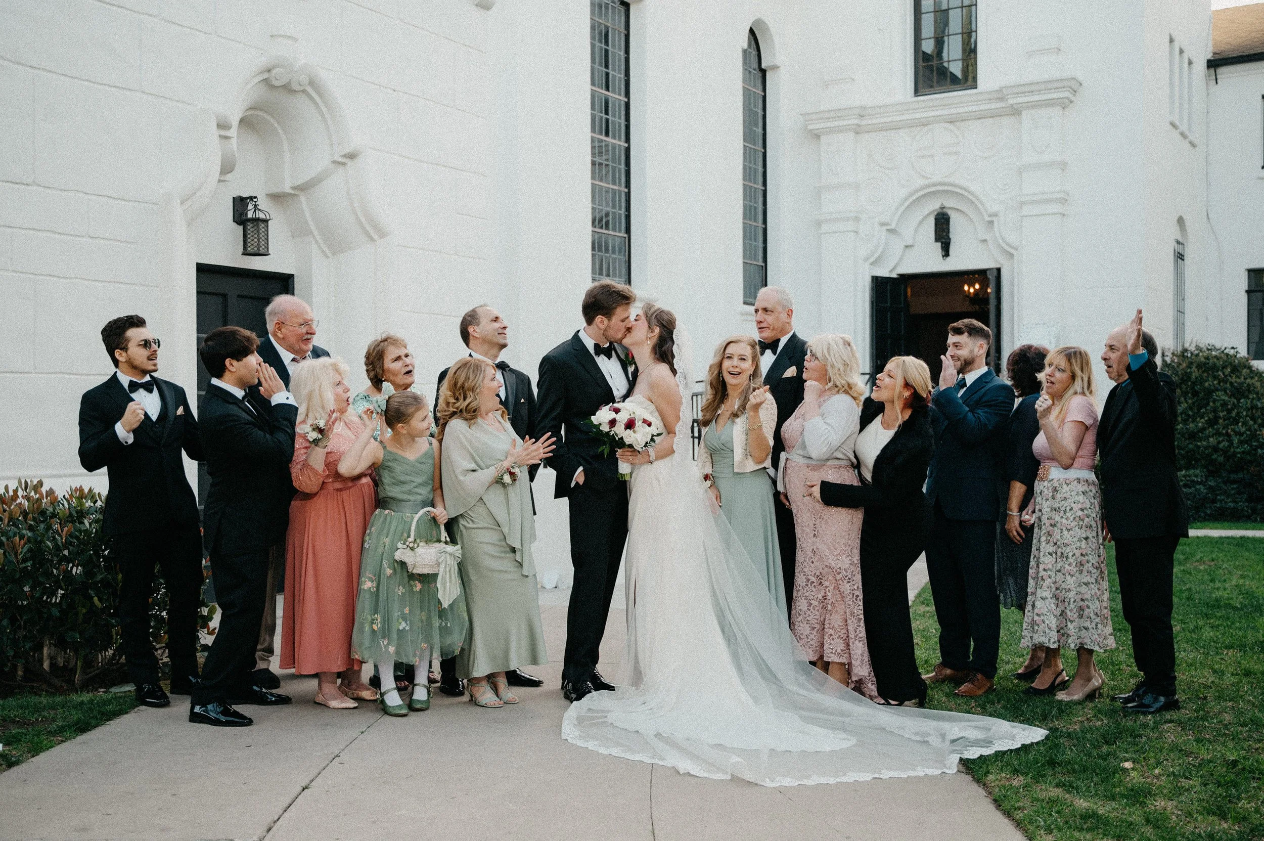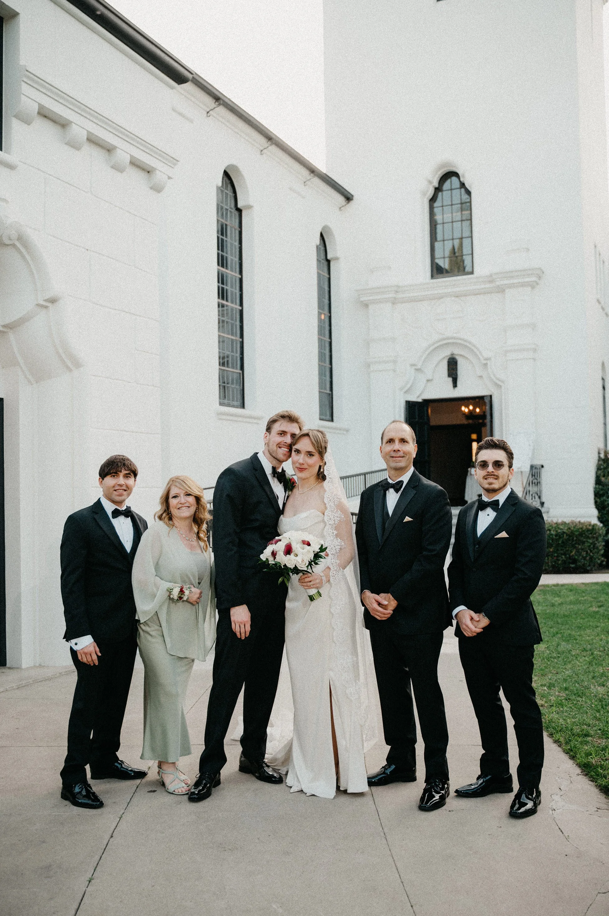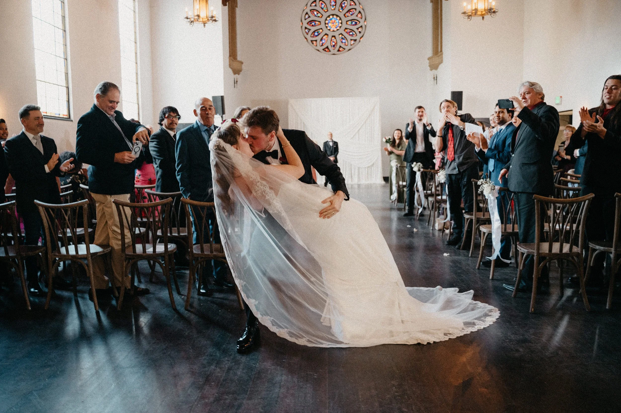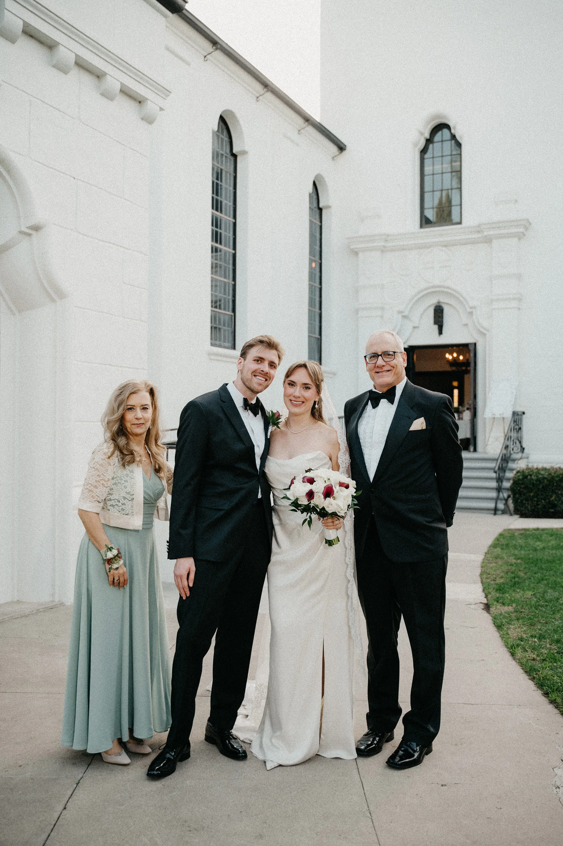 After the ceremony, we captured family photos, wedding party portraits, and romantic couple portraits around the chapel property. One of the best things about photographing weddings at Fillmore Chapel is the variety of backdrops: clean indoor spaces, classic lines, and architectural details that stay beautiful in every season.