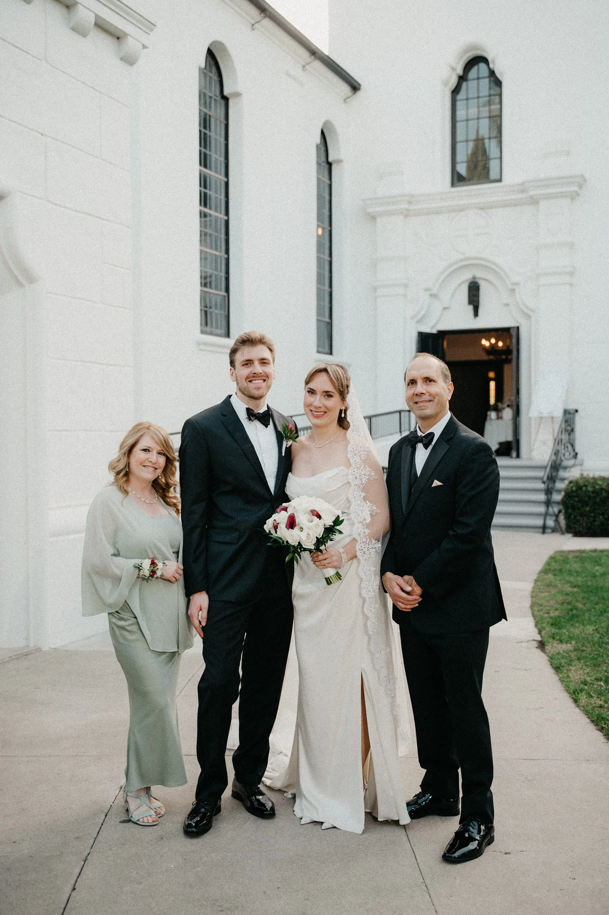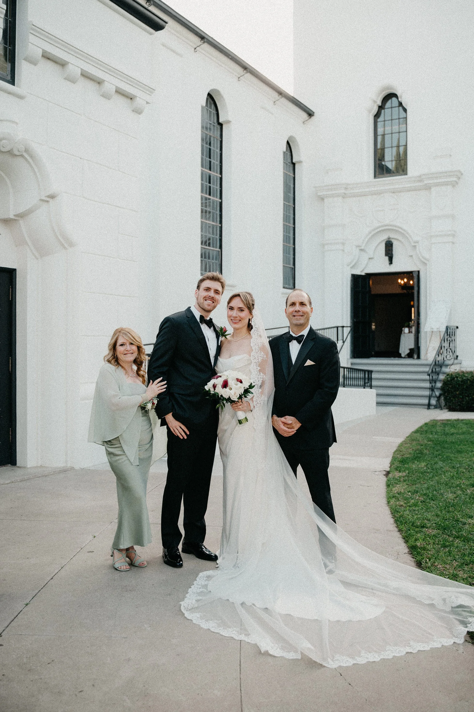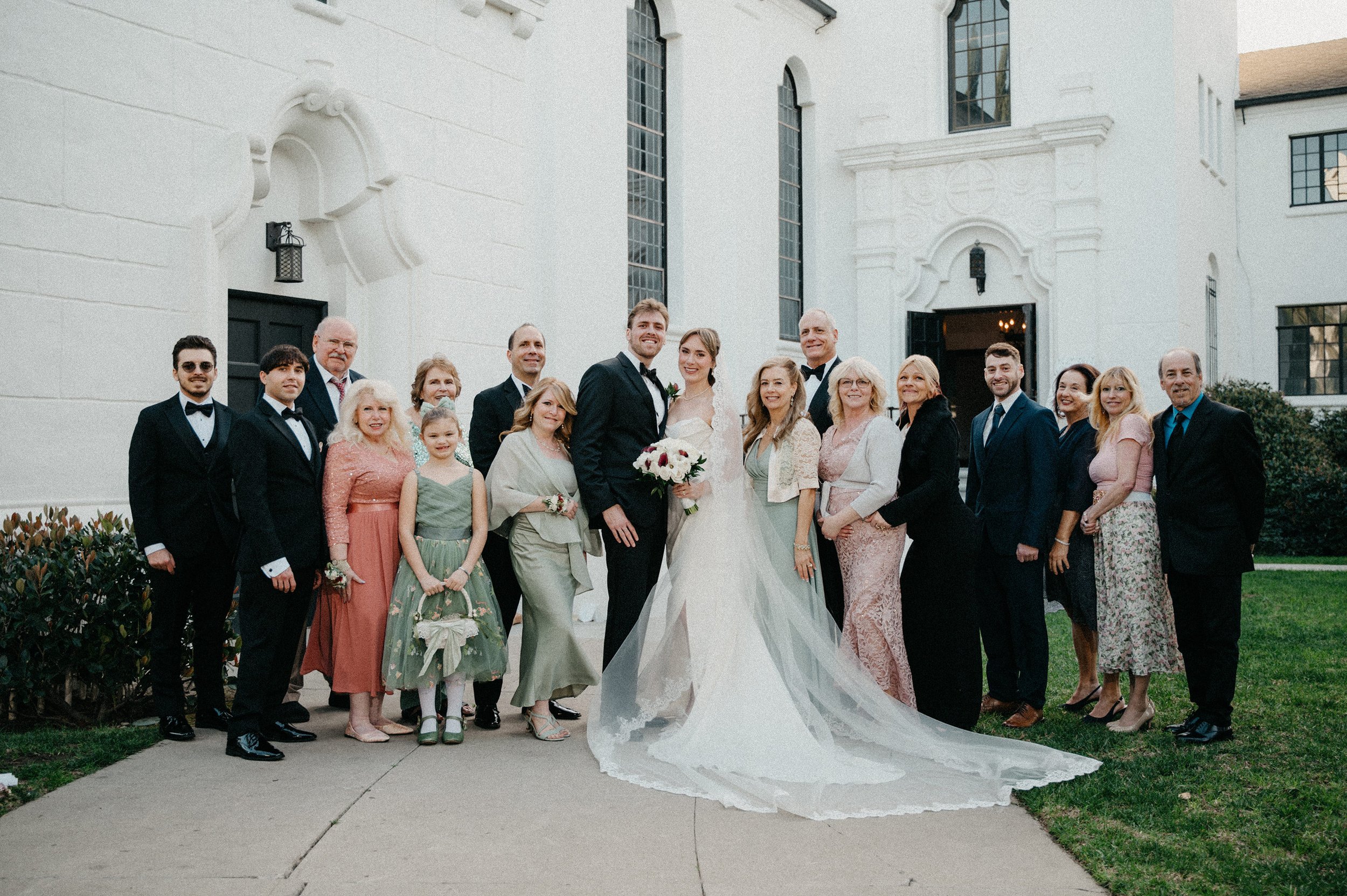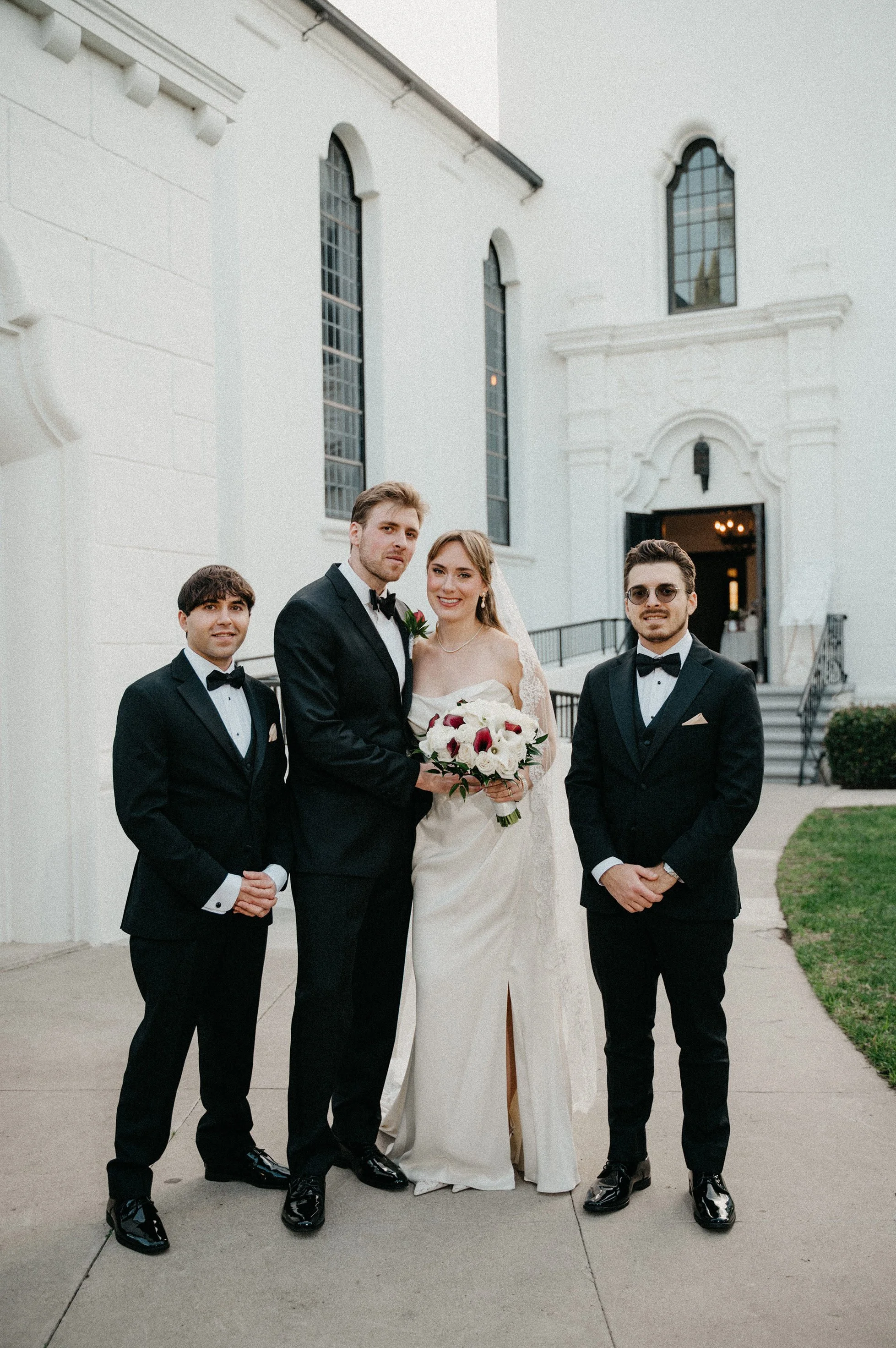 After the ceremony, we captured family photos, wedding party portraits, and romantic couple portraits around the chapel property. One of the best things about photographing weddings at Fillmore Chapel is the variety of backdrops: clean indoor spaces, classic lines, and architectural details that stay beautiful in every season.