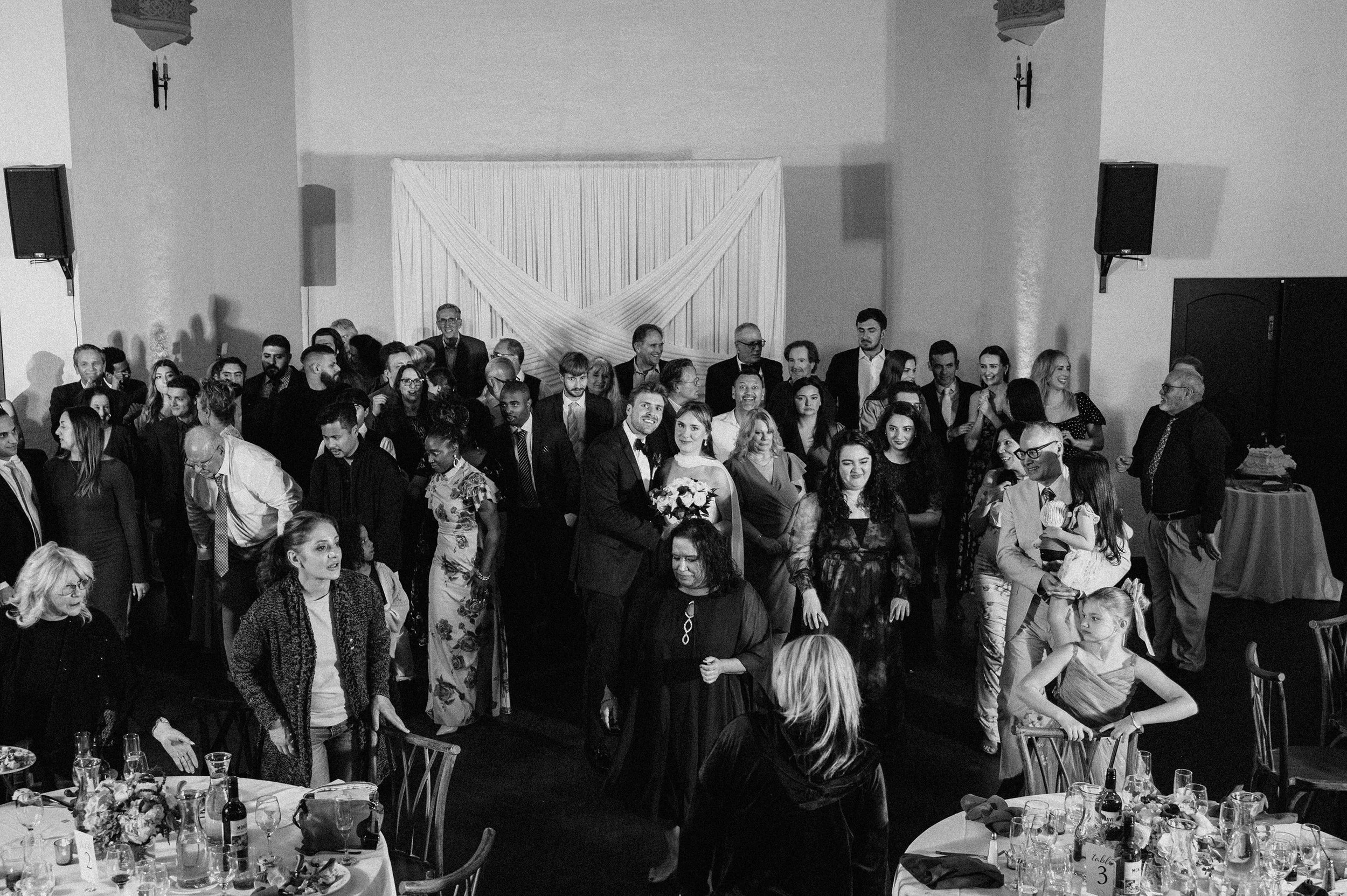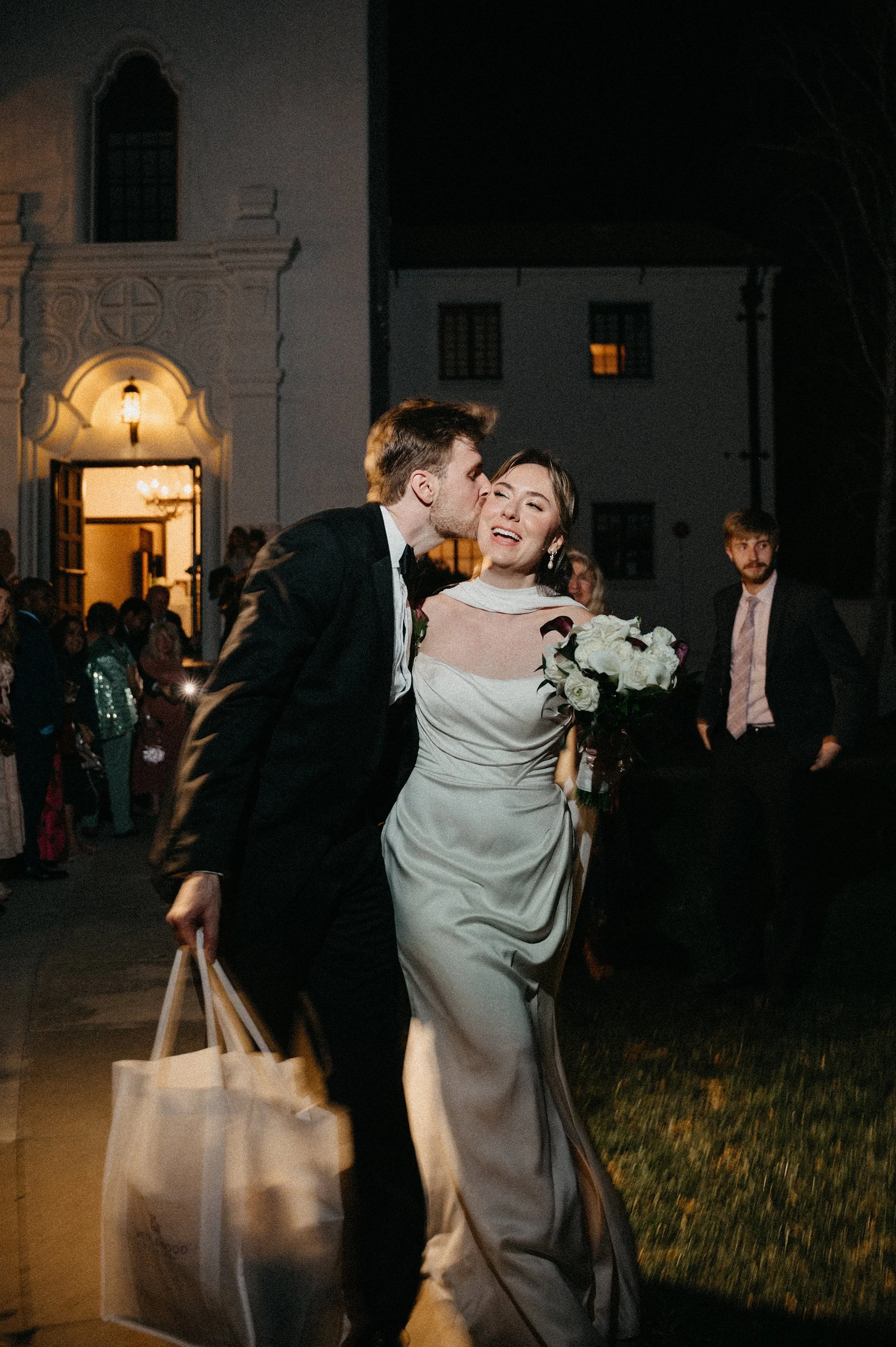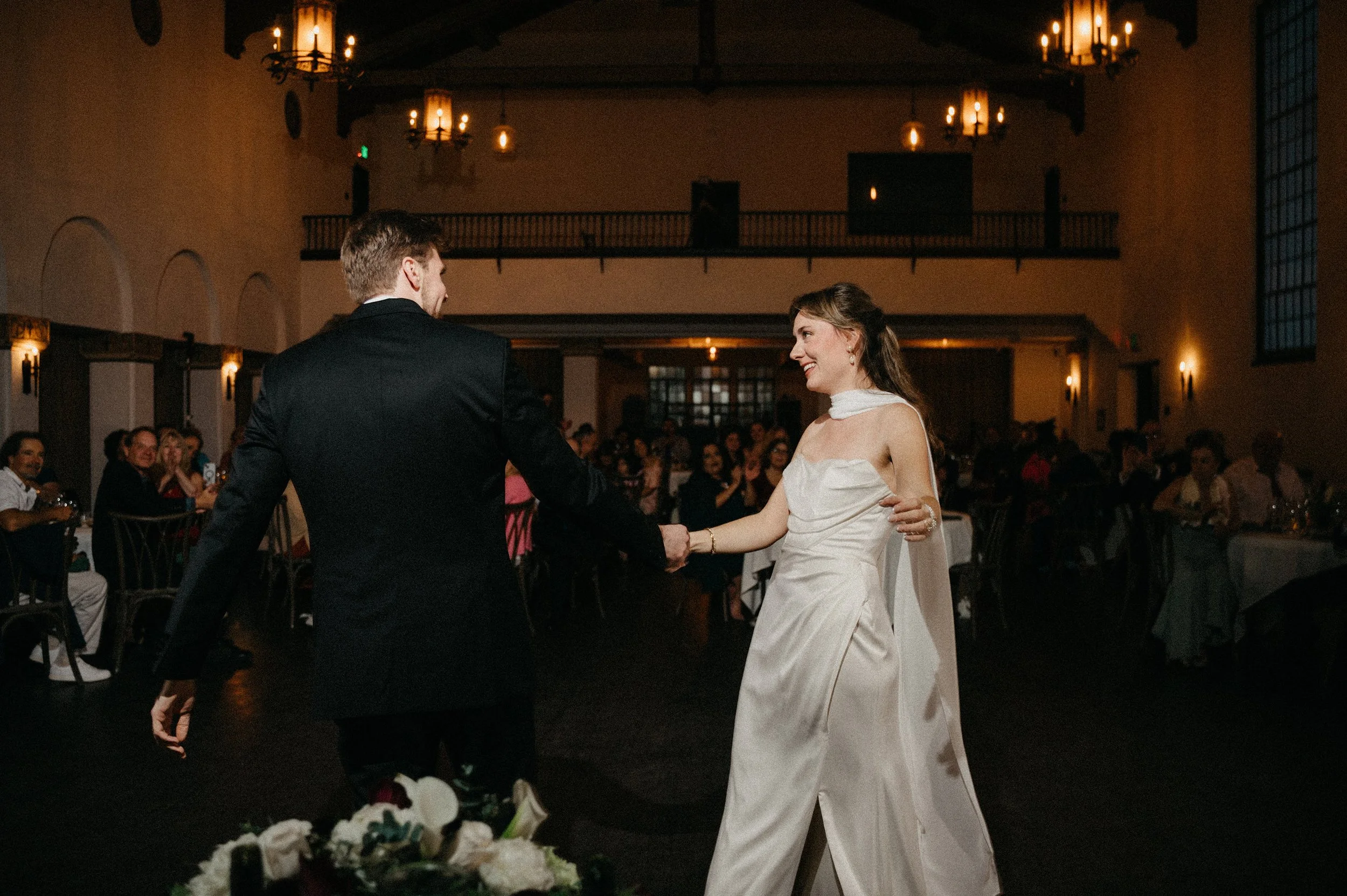 From the grand entrance into the first dance, the reception flowed naturally into heartfelt toasts, parent dances, and a packed dance floor. The night ended with a send-off outside the chapel, and even after dark, the venue’s exterior still holds detail and texture—making the final images feel dramatic, timeless, and cinematic.