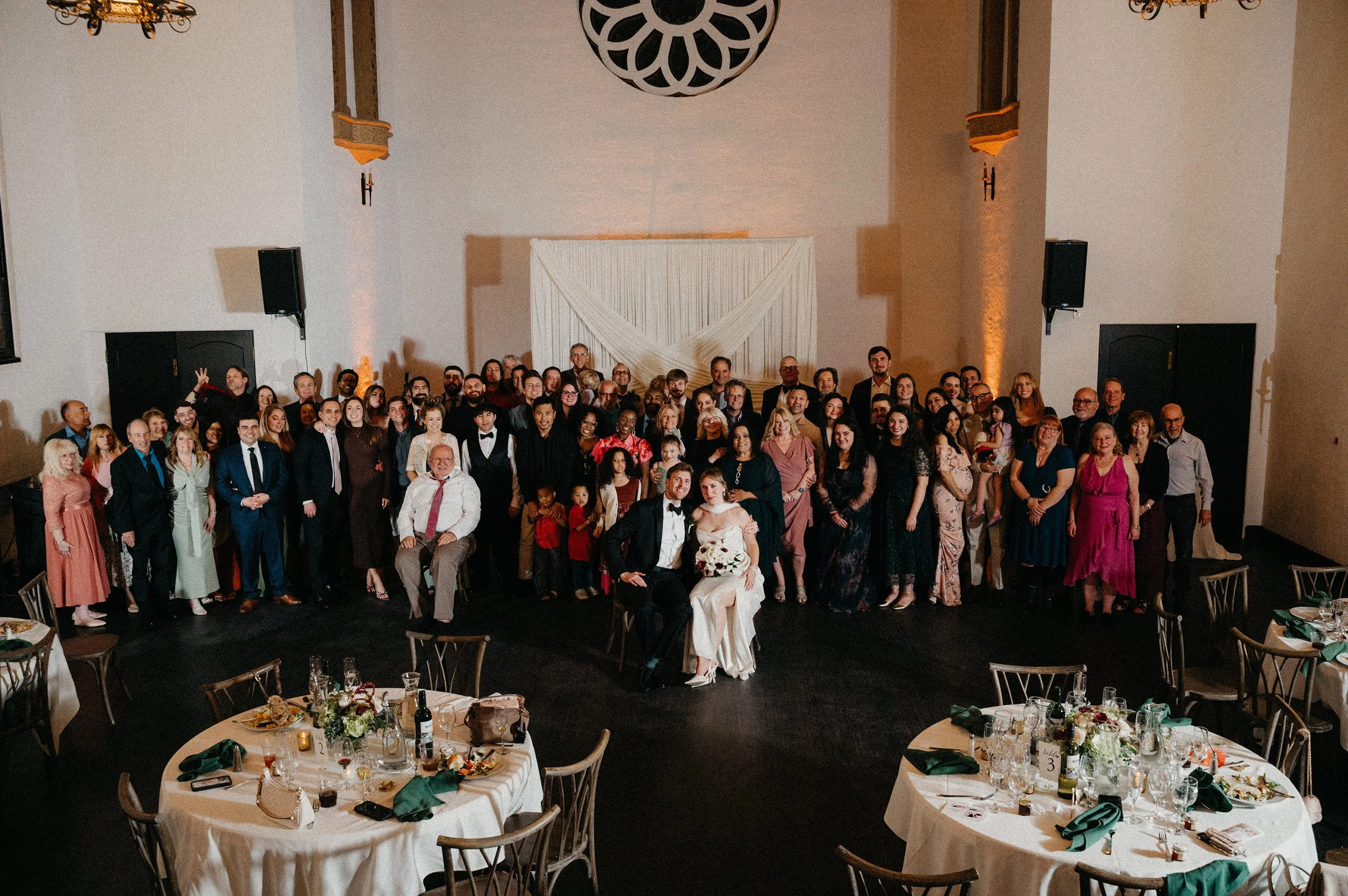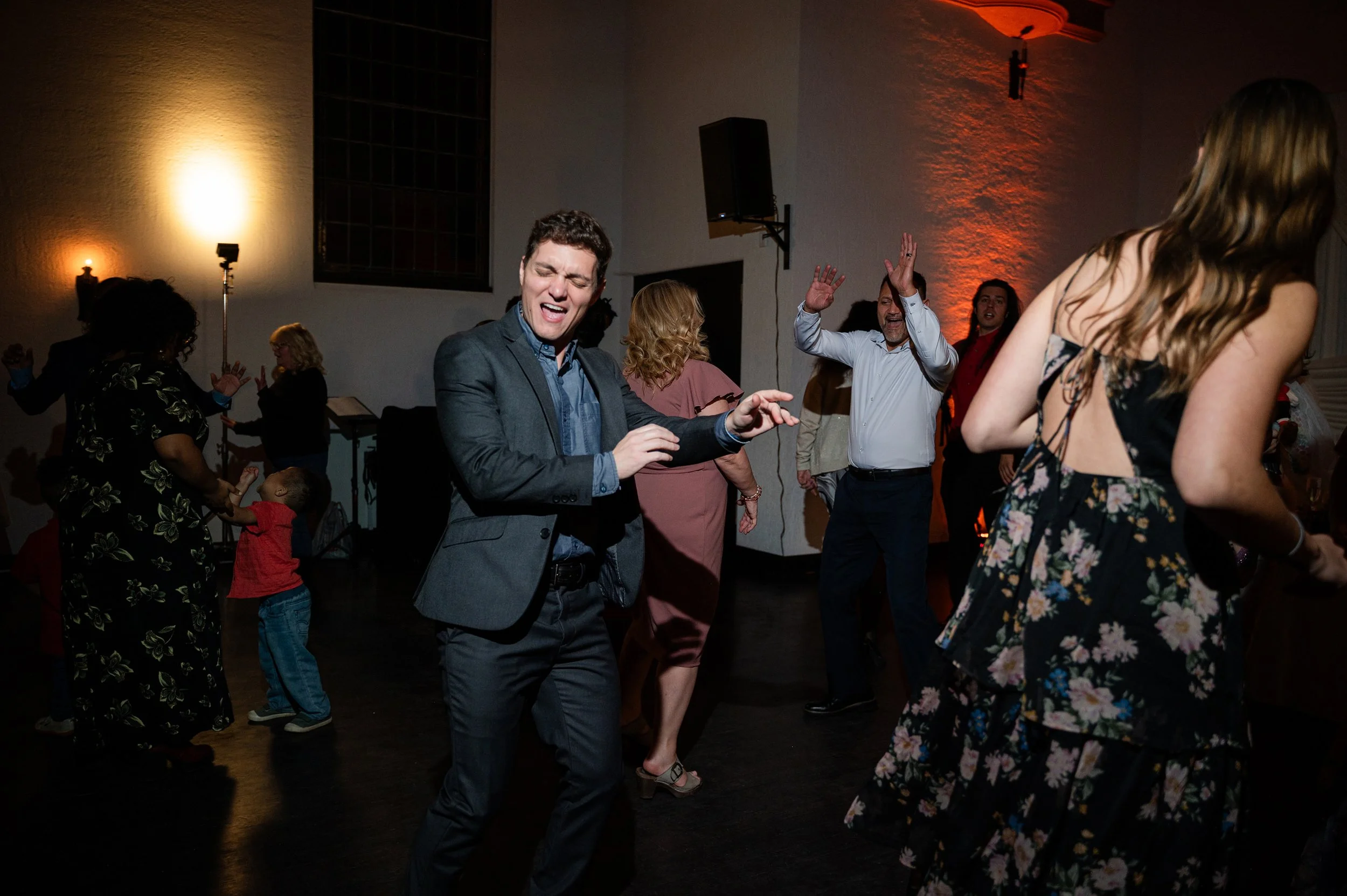 Reception inside the Fillmore Chapel: donuts, uplighting, and nonstop energy