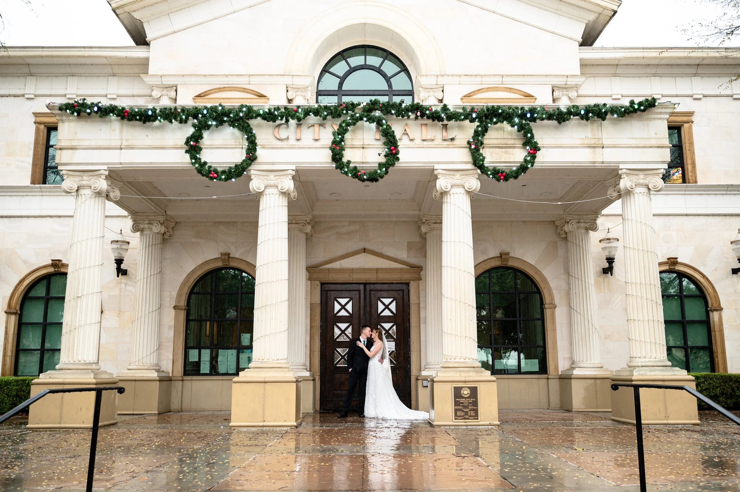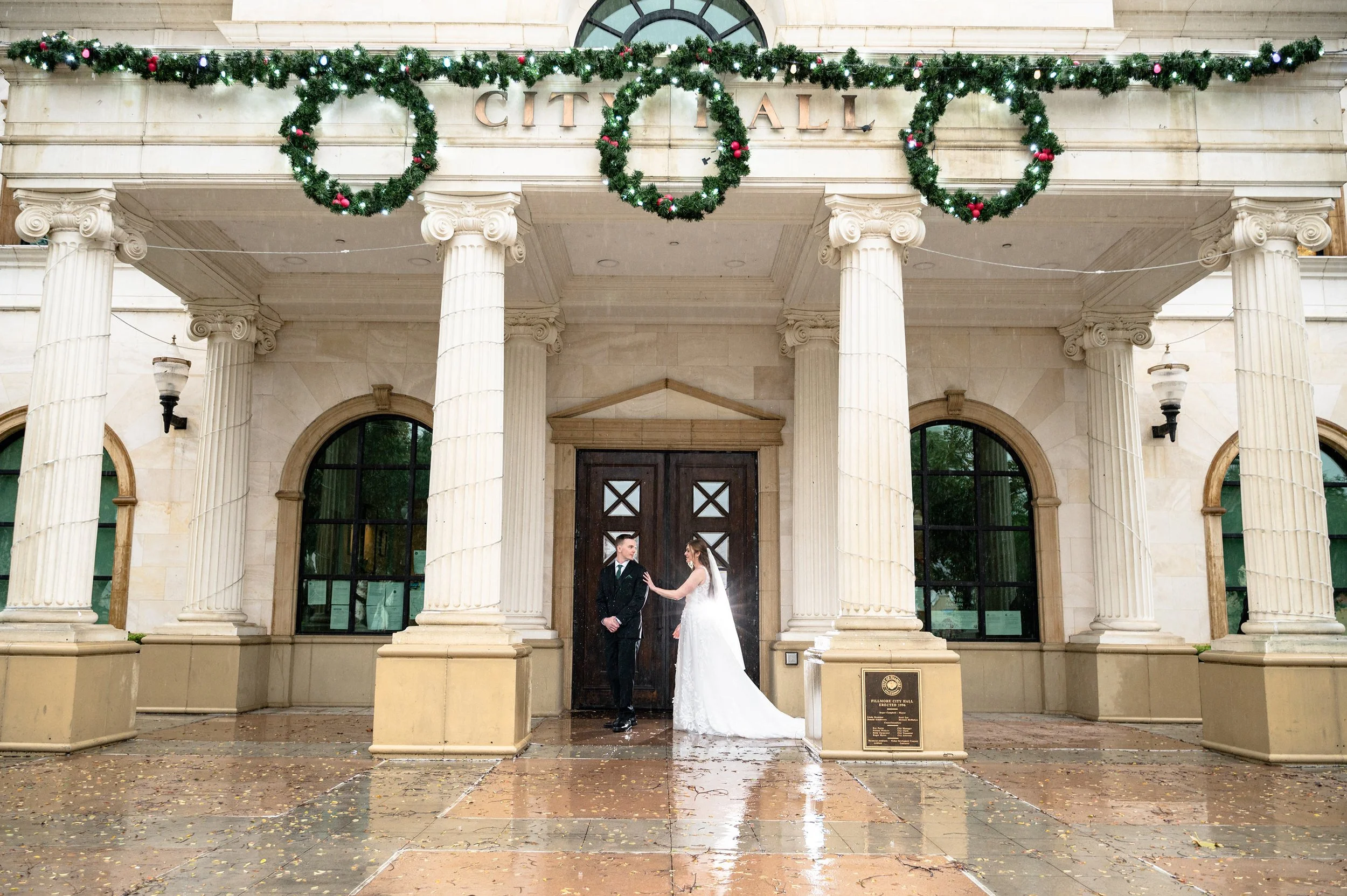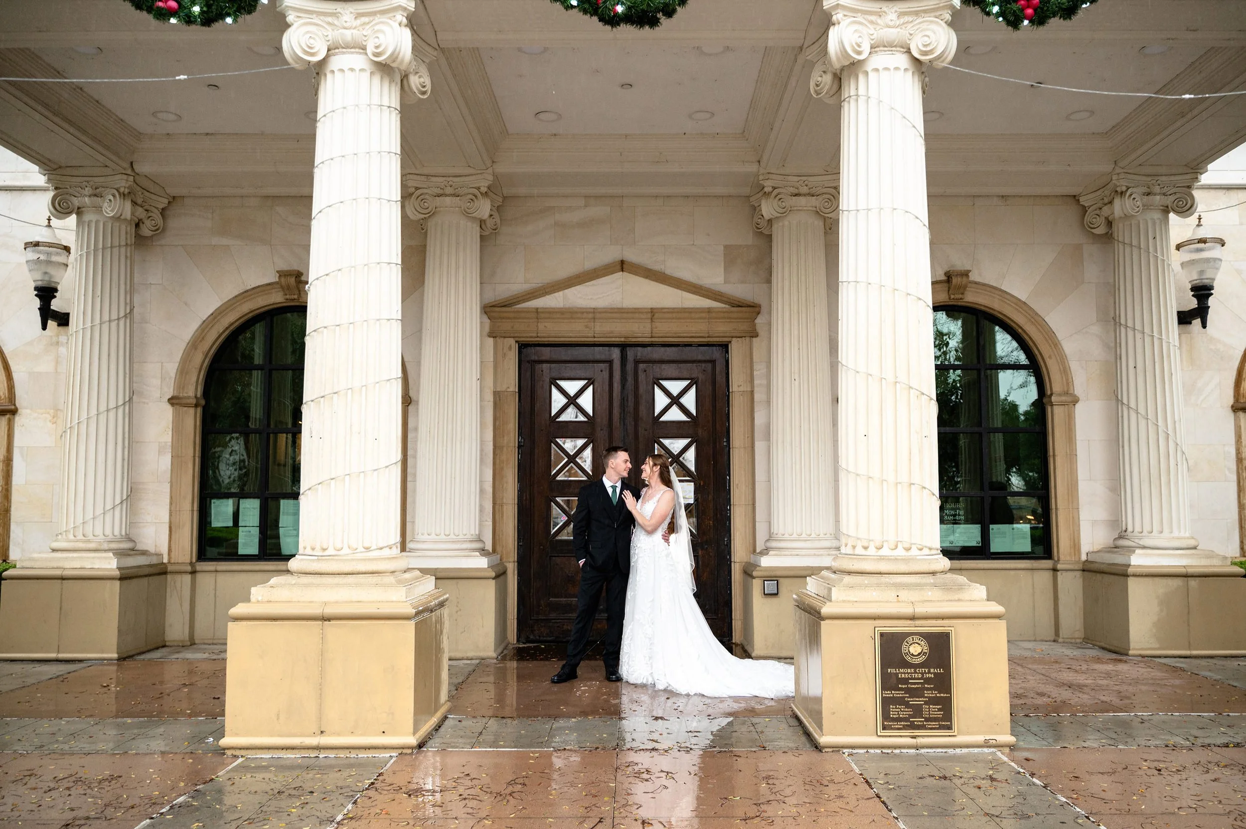 A rainy wedding day pivot: first look moved to Fillmore City Hall