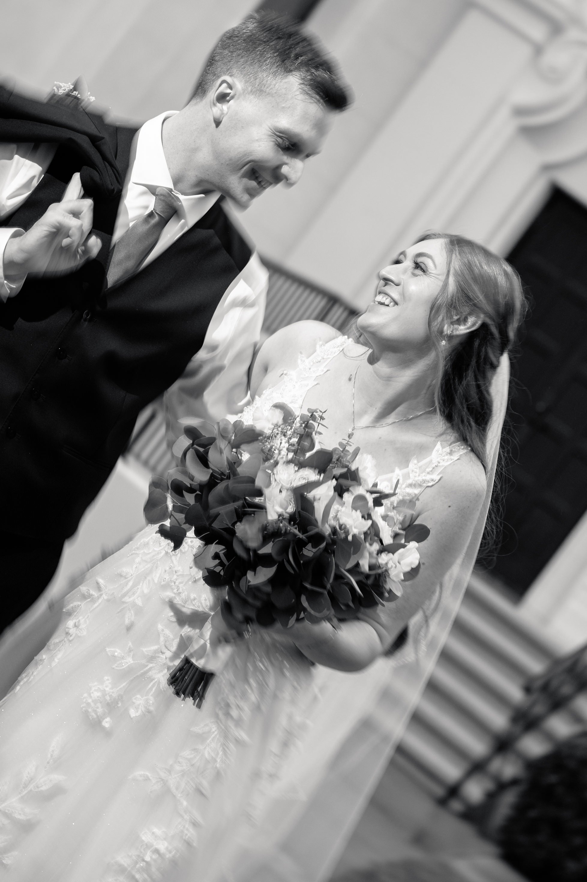 We captured exactly what Michaela wanted — playful, laughing, romantic portraits outside the chapel towers — plus photos showing off: