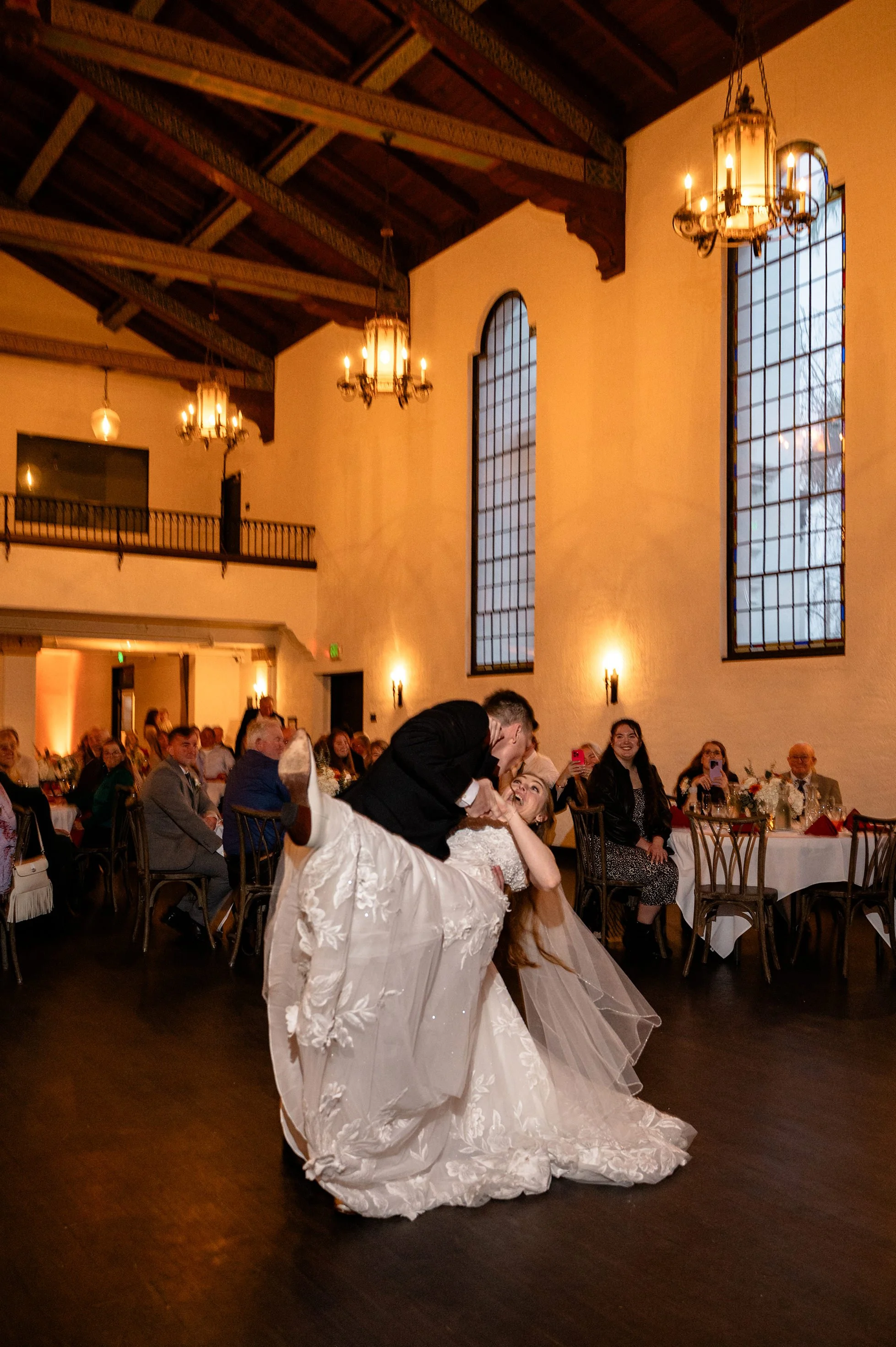 After Michaela and Nick kissed, they walked halfway down the aisle and Nick spun her into a dip — a big, fun “this is so us” moment that brought the whole room to life and gave us an incredible ending sequence to the ceremony set.