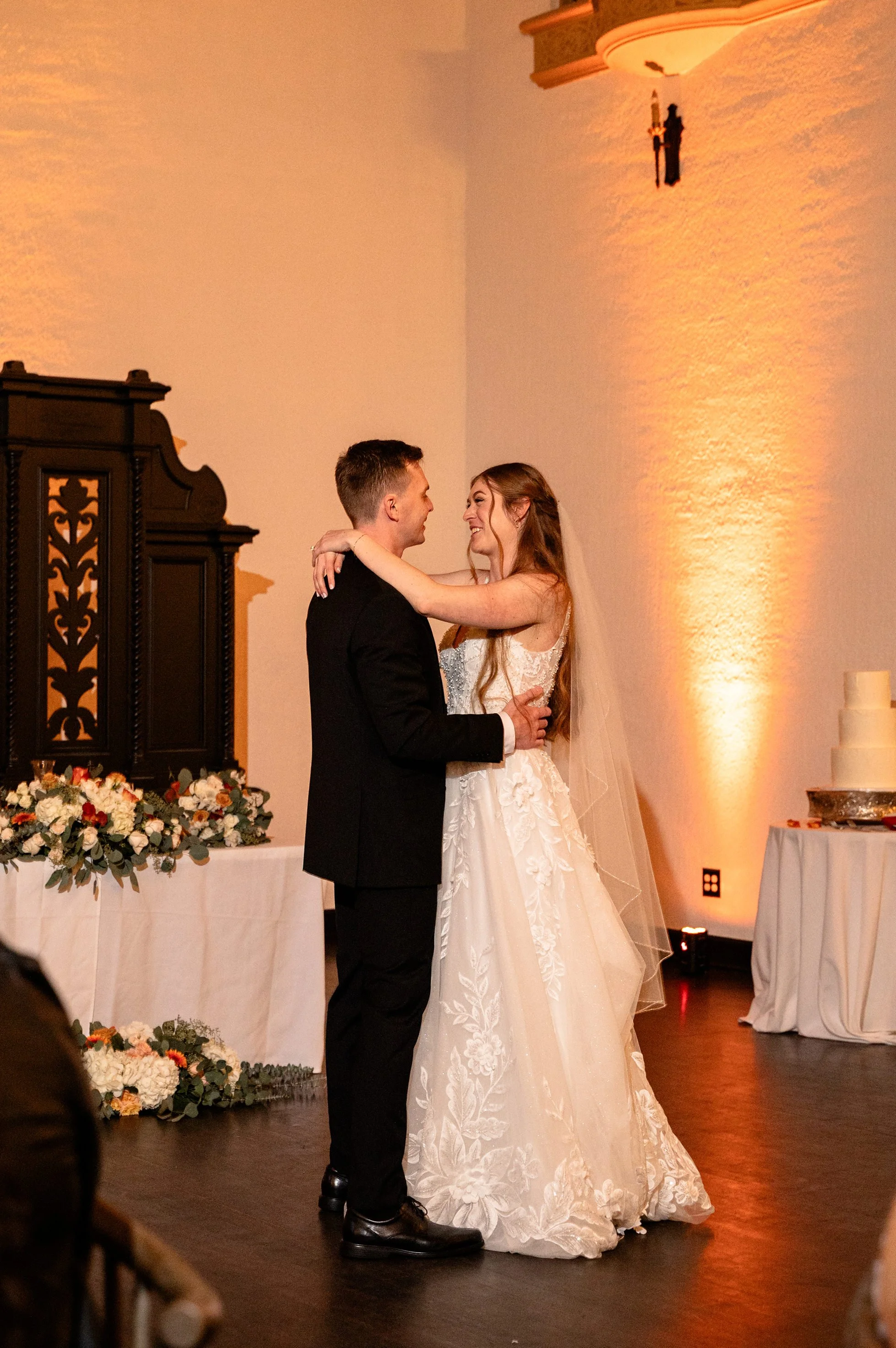 Michaela loves to line dance, so she taught everyone a simple 16-count line dance — and about 50 out of the 70 guests joined in to learn it. The dance floor stayed packed after that.