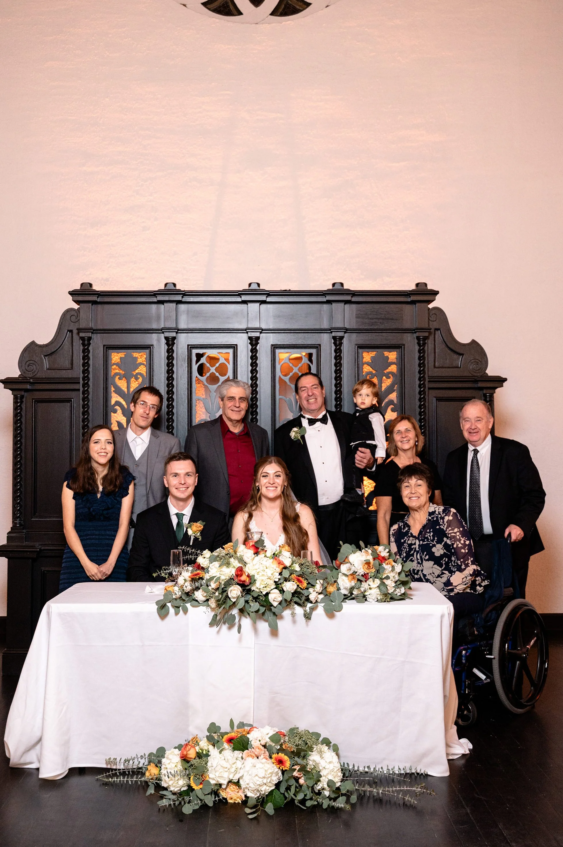They also did something I love: table photos at the sweetheart table, where each guest table came up for photos. It’s such a smart way to make sure you have at least one great photo with everyone, without chasing people around the dance floor later.