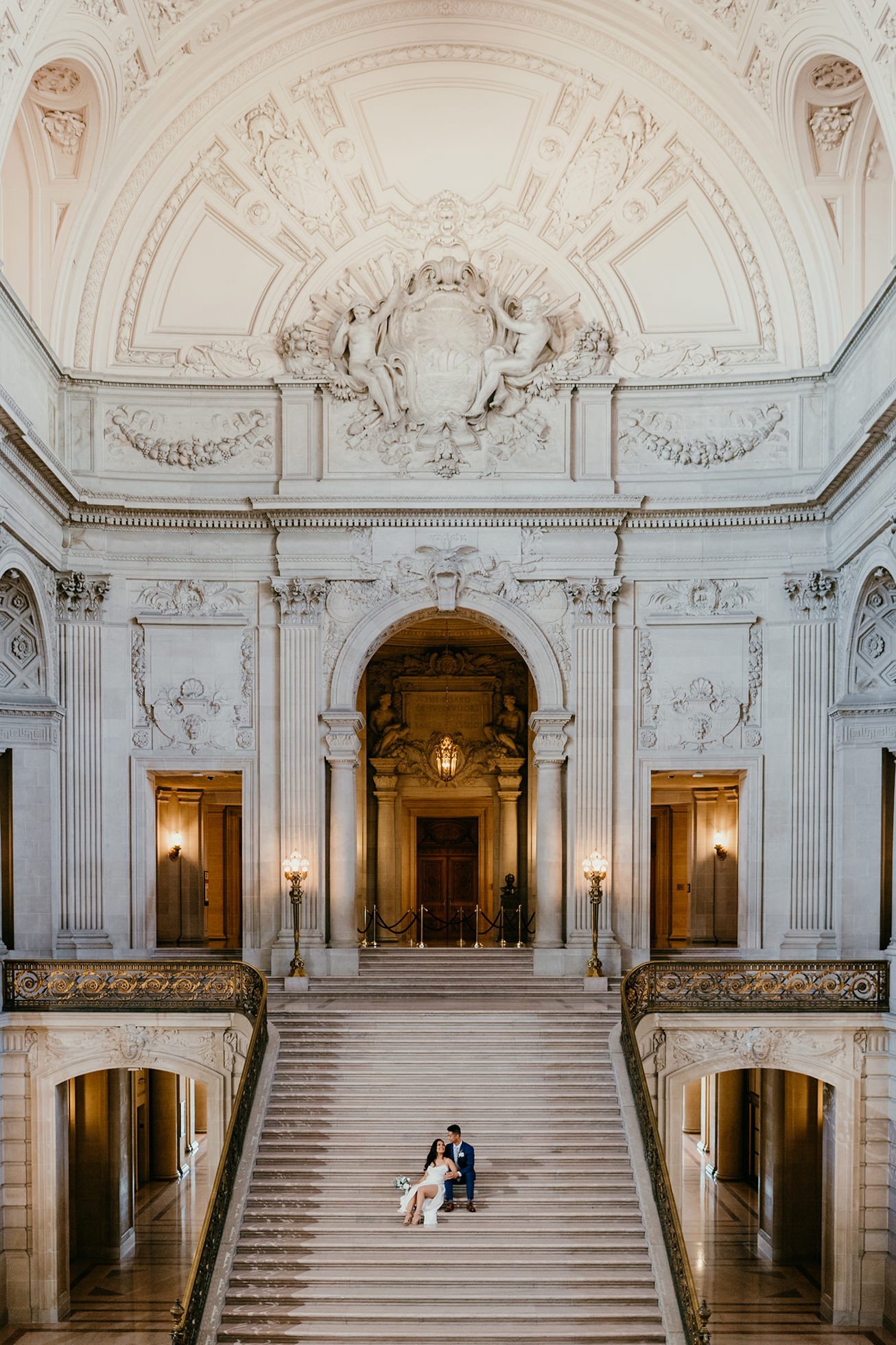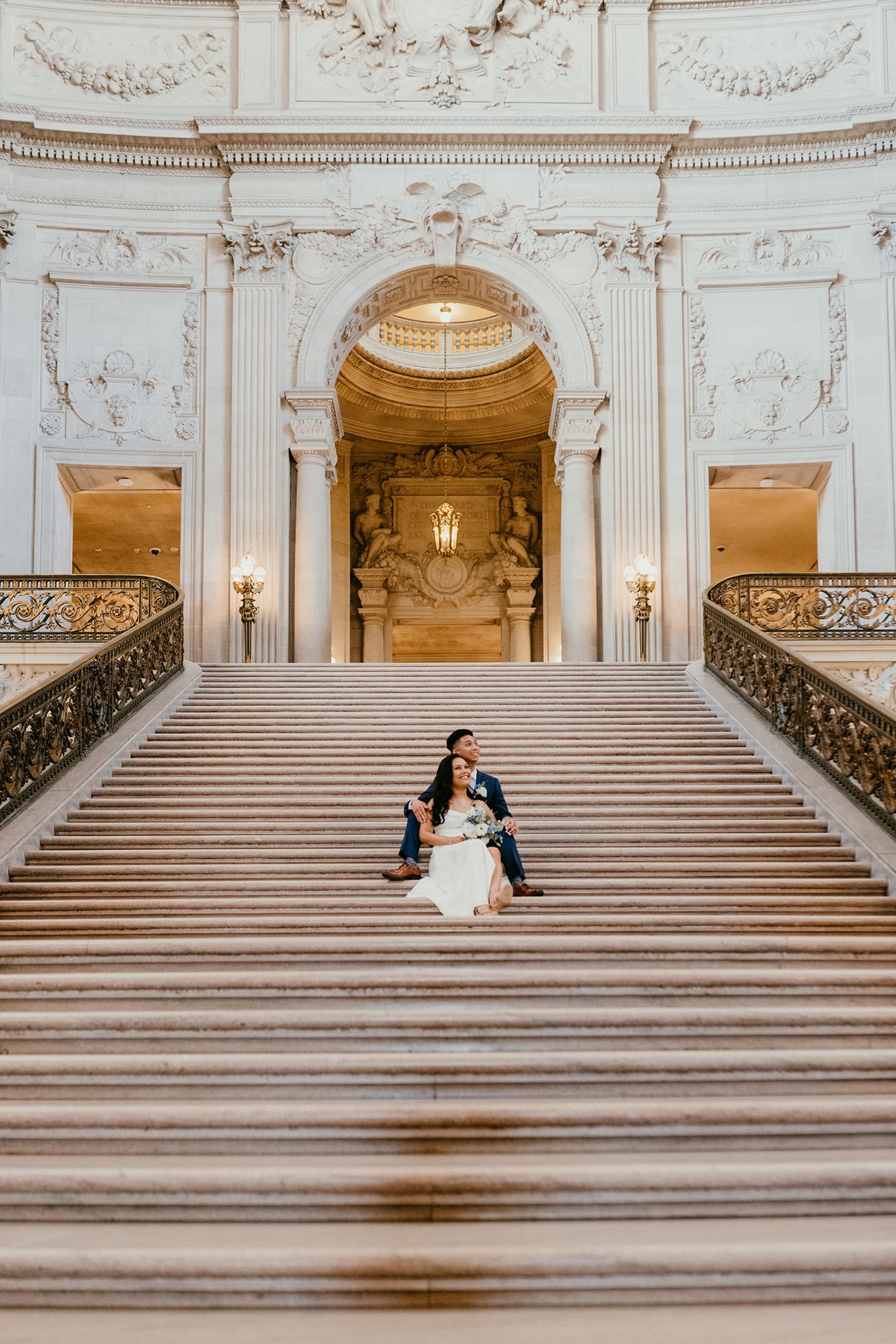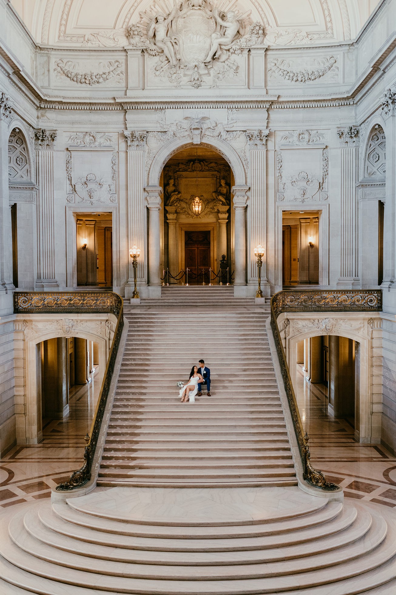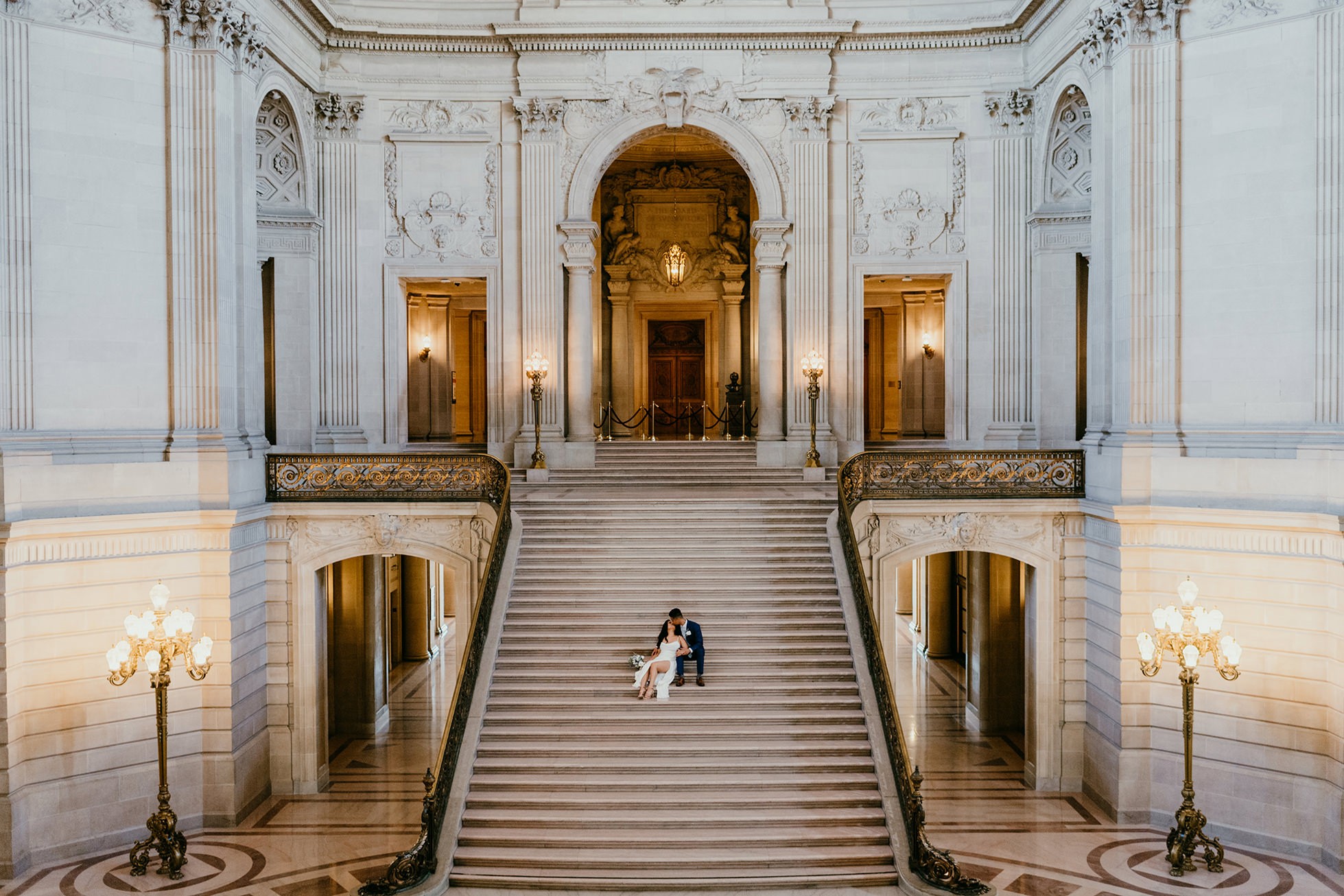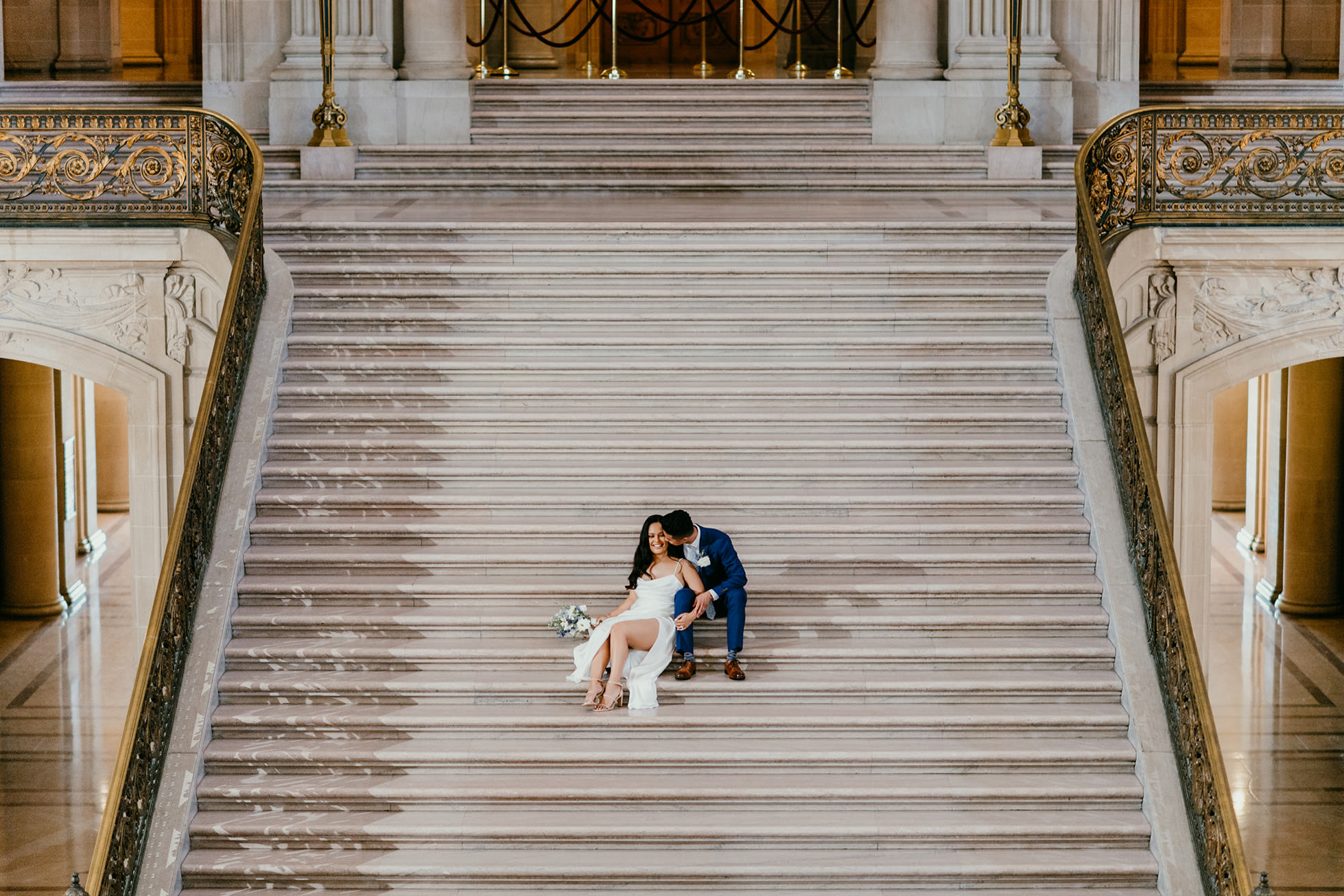 Their ceremony took place inside San Francisco City Hall, one of the most iconic elopement locations in California. The architecture, the light, the scale—it’s unmatched.