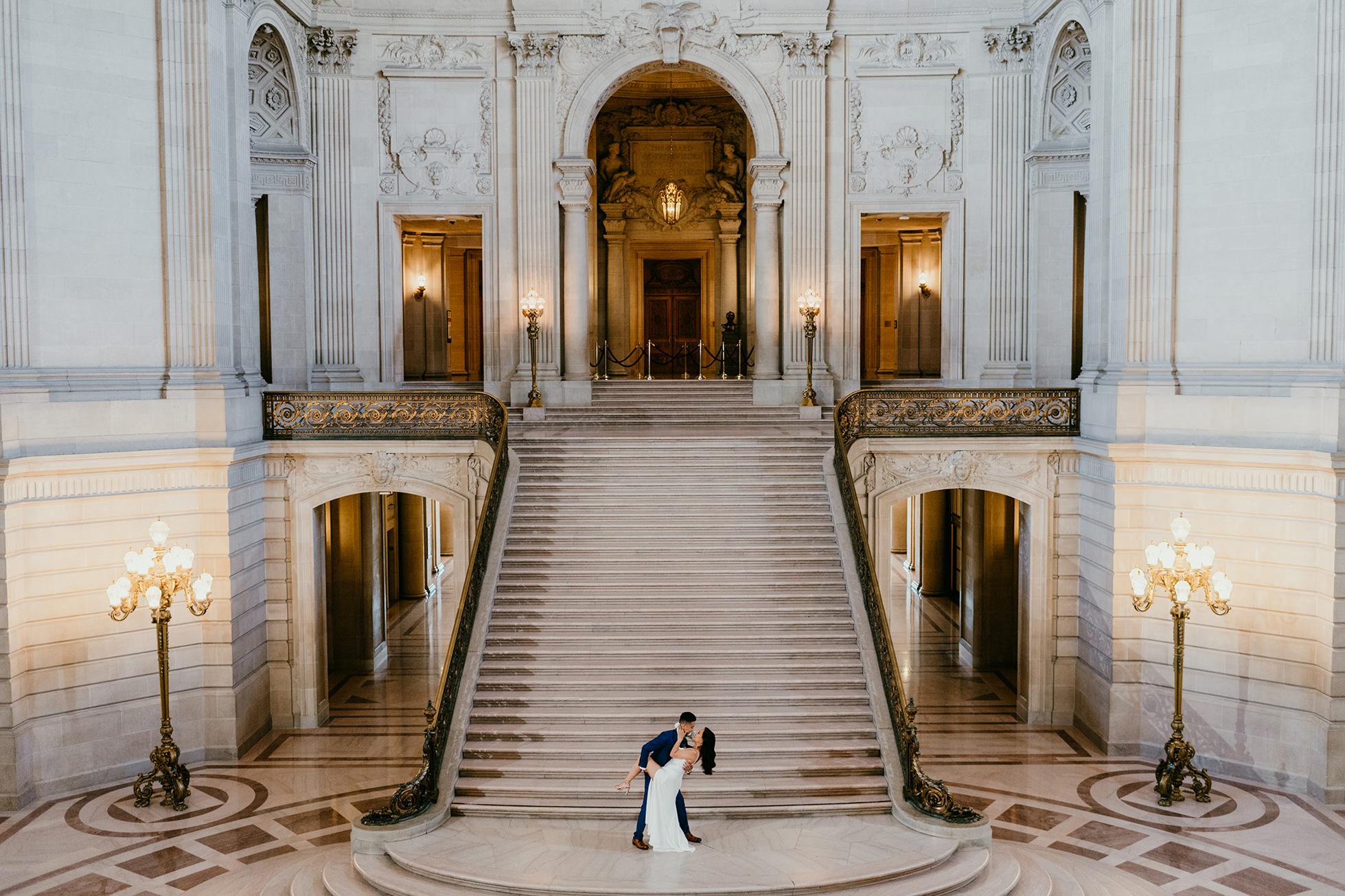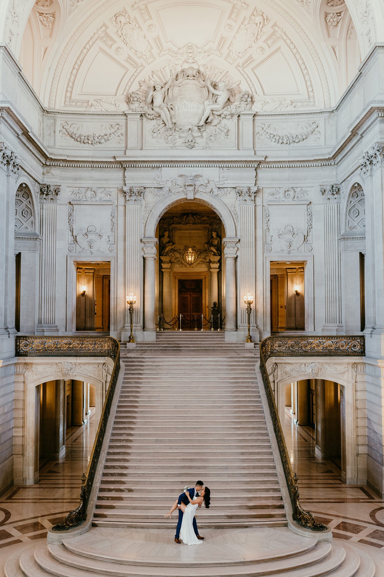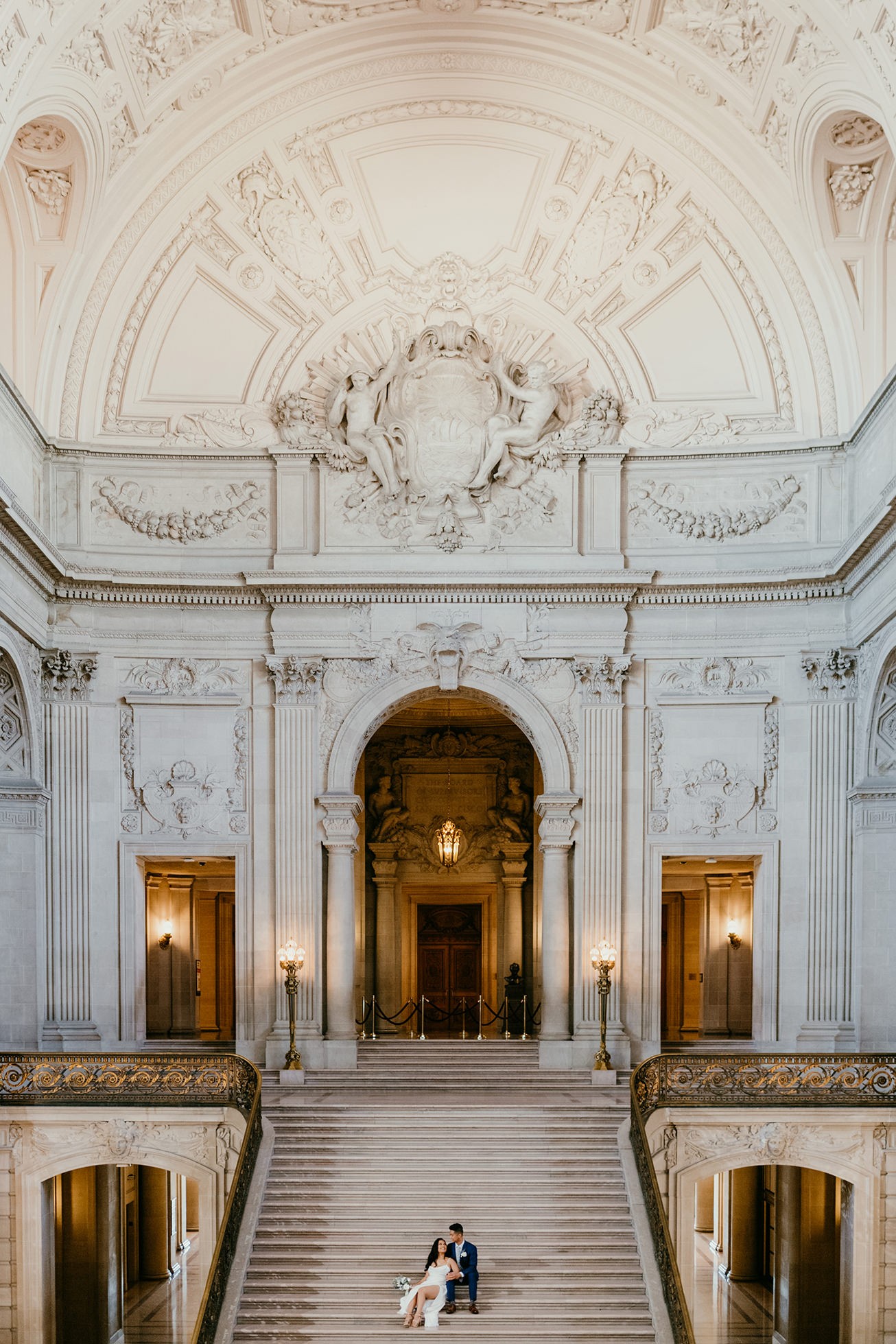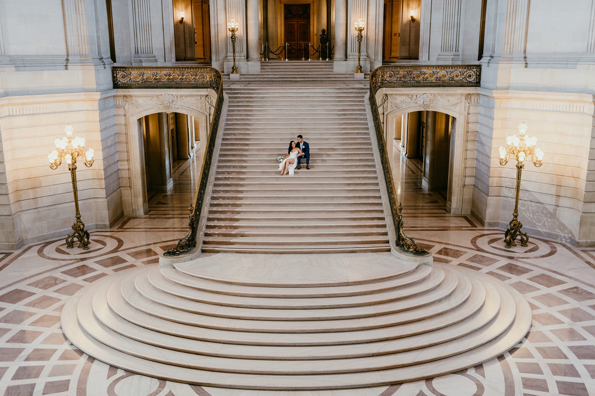 Their ceremony took place inside San Francisco City Hall, one of the most iconic elopement locations in California. The architecture, the light, the scale—it’s unmatched.