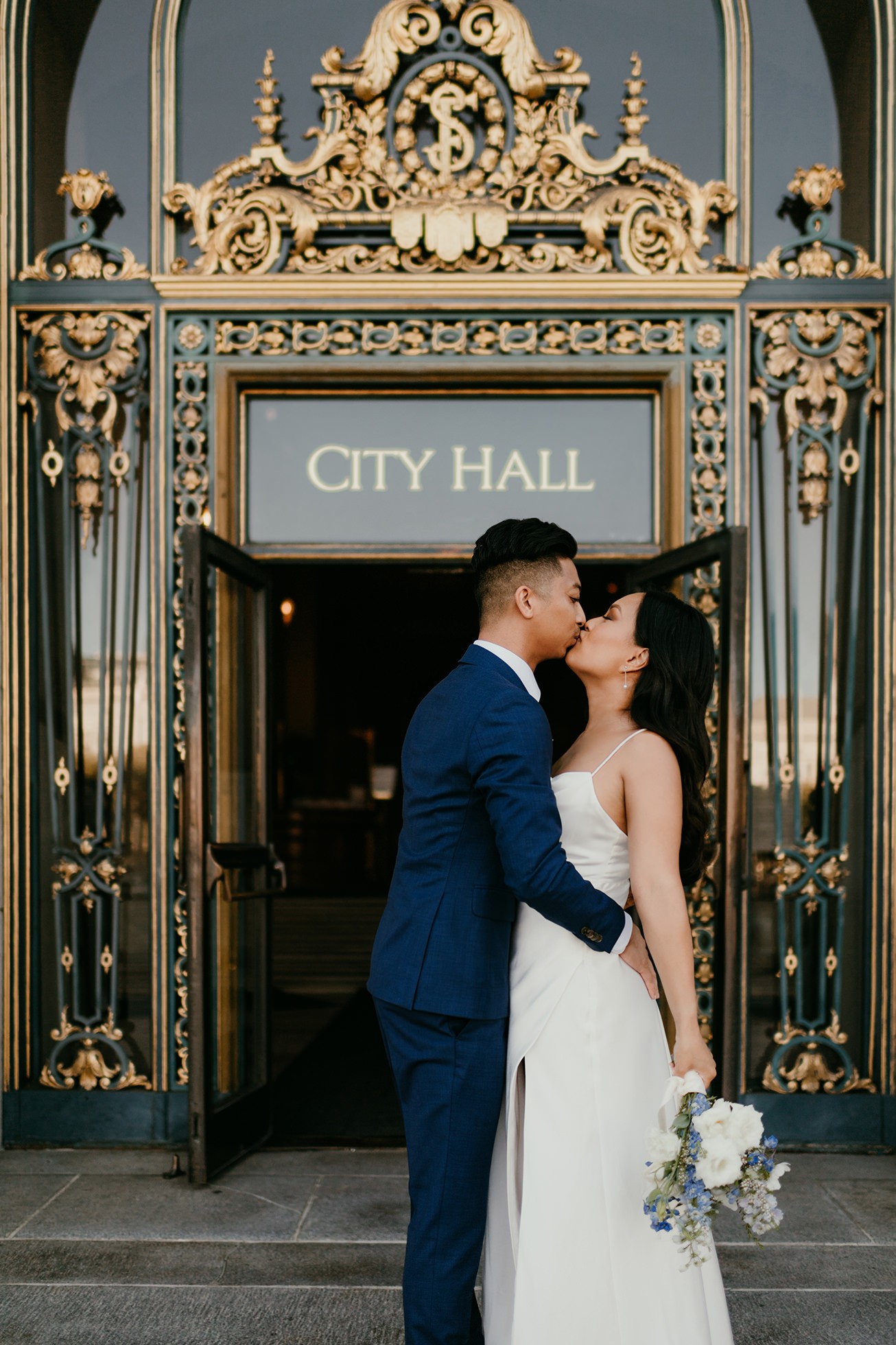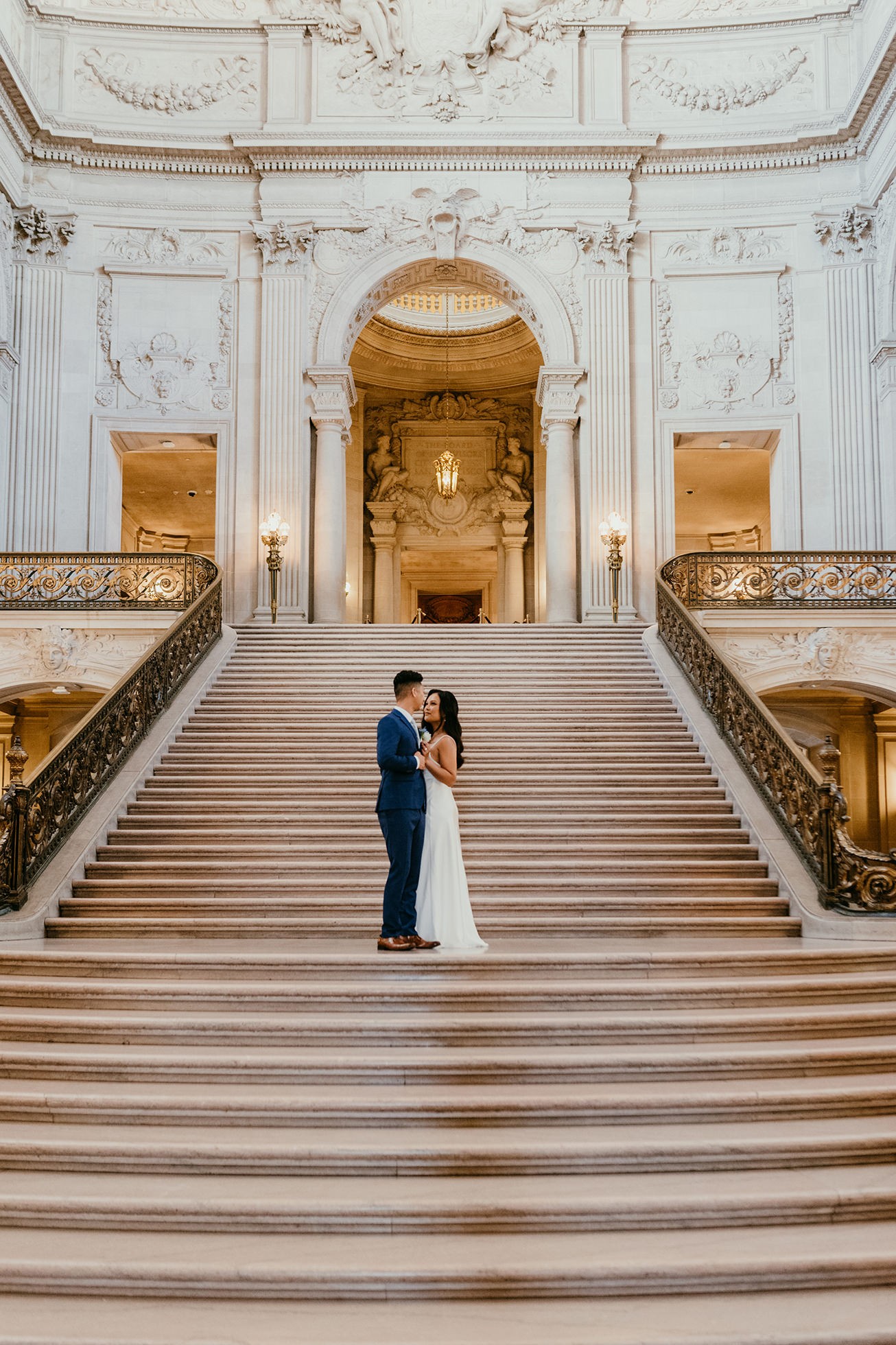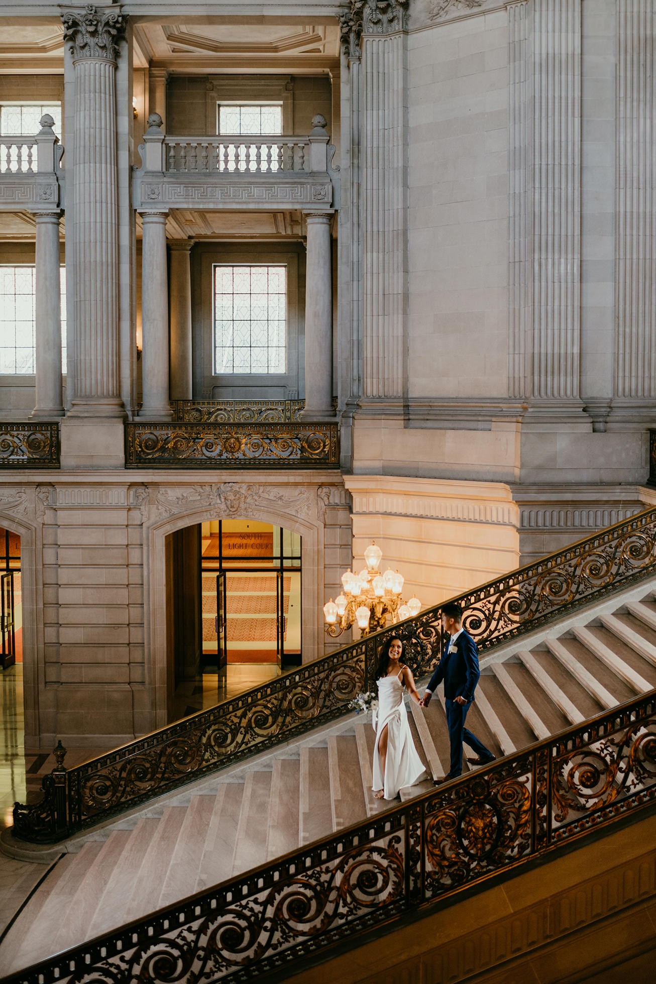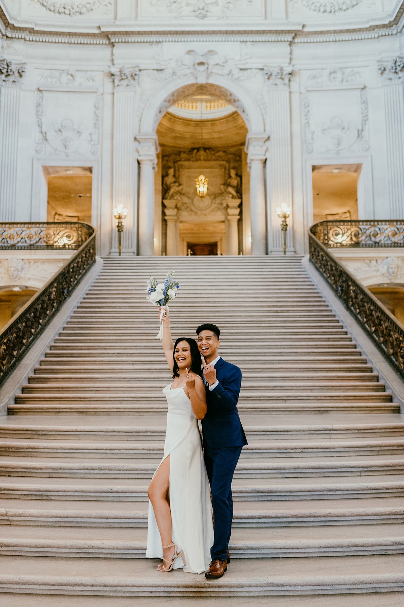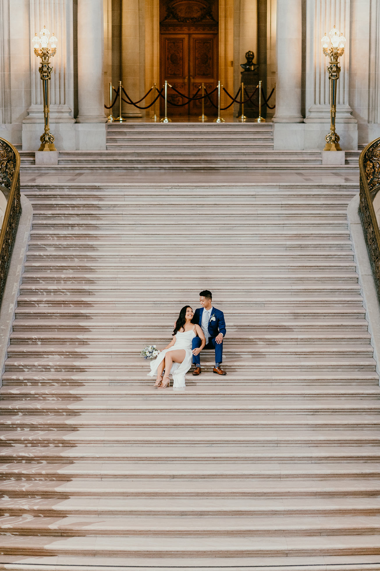 Their ceremony took place inside San Francisco City Hall, one of the most iconic elopement locations in California. The architecture, the light, the scale—it’s unmatched.