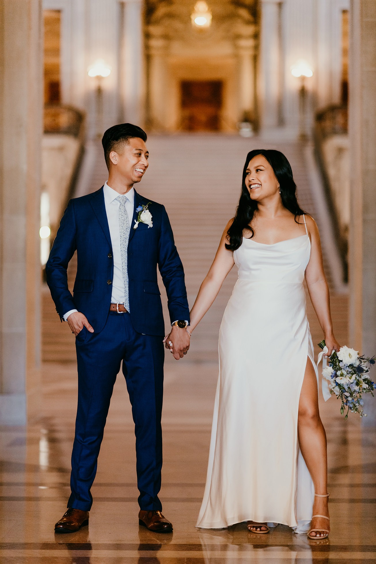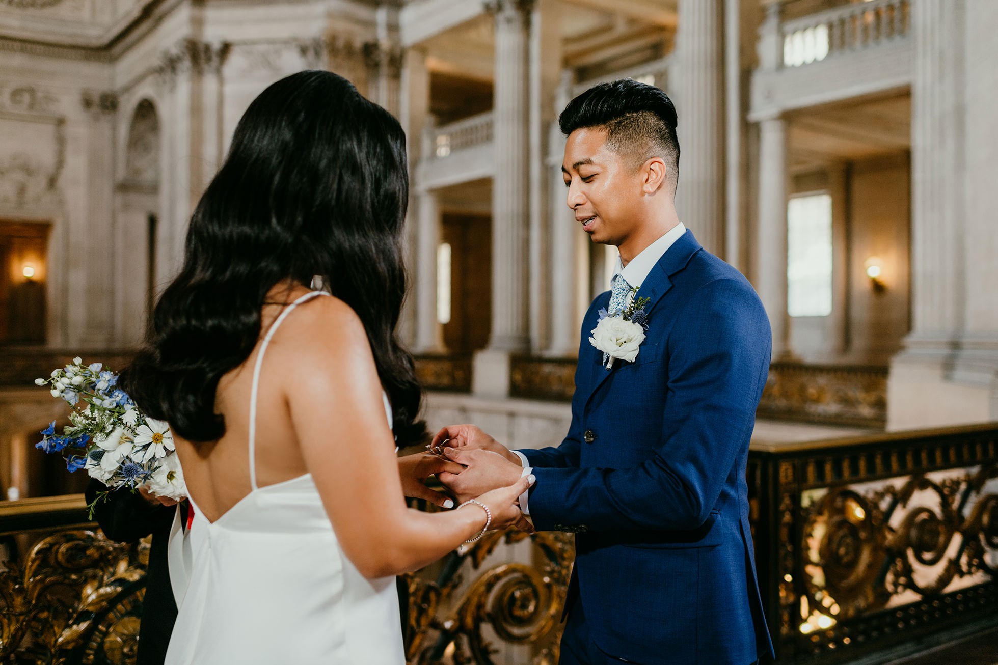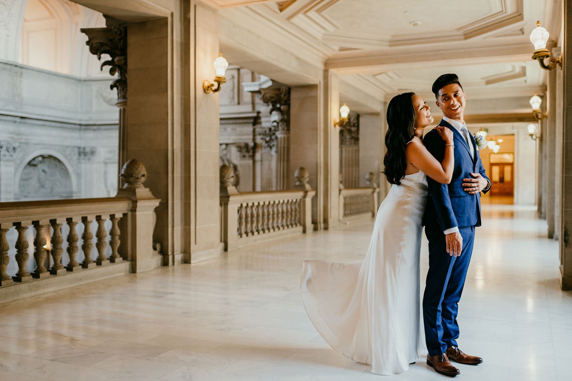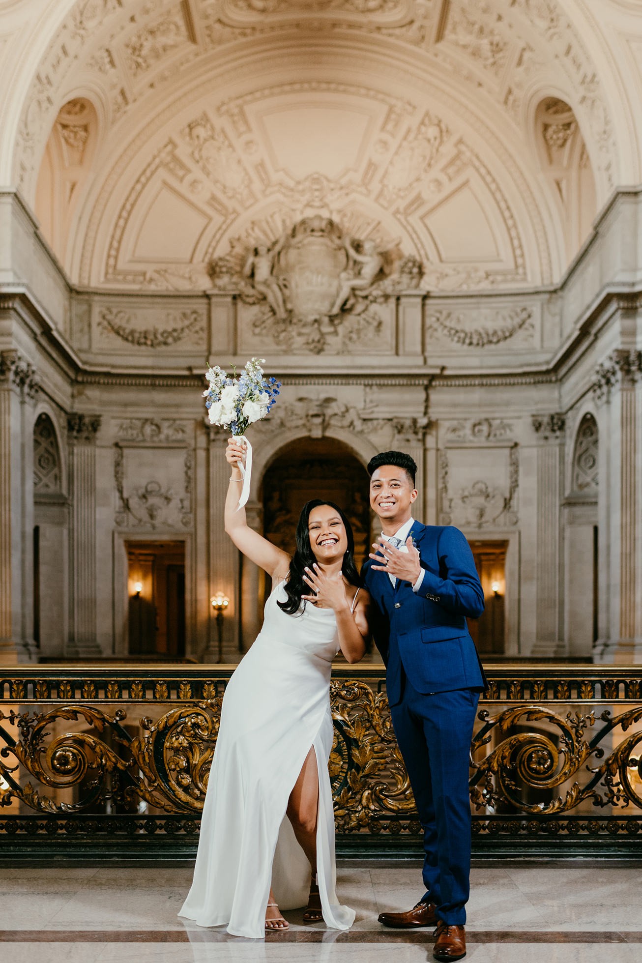 Their ceremony took place inside San Francisco City Hall, one of the most iconic elopement locations in California. The architecture, the light, the scale—it’s unmatched.