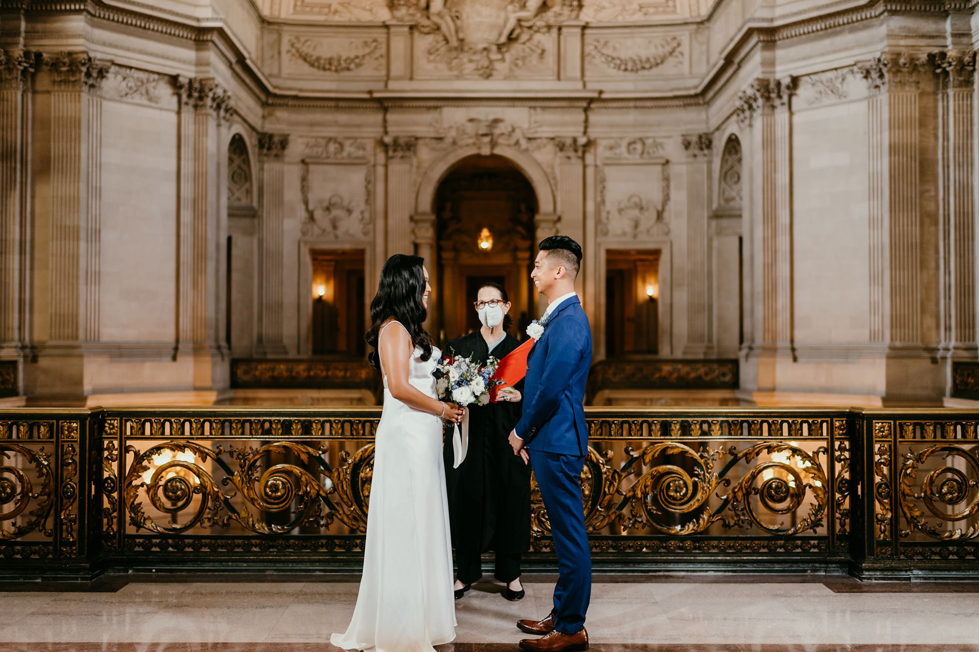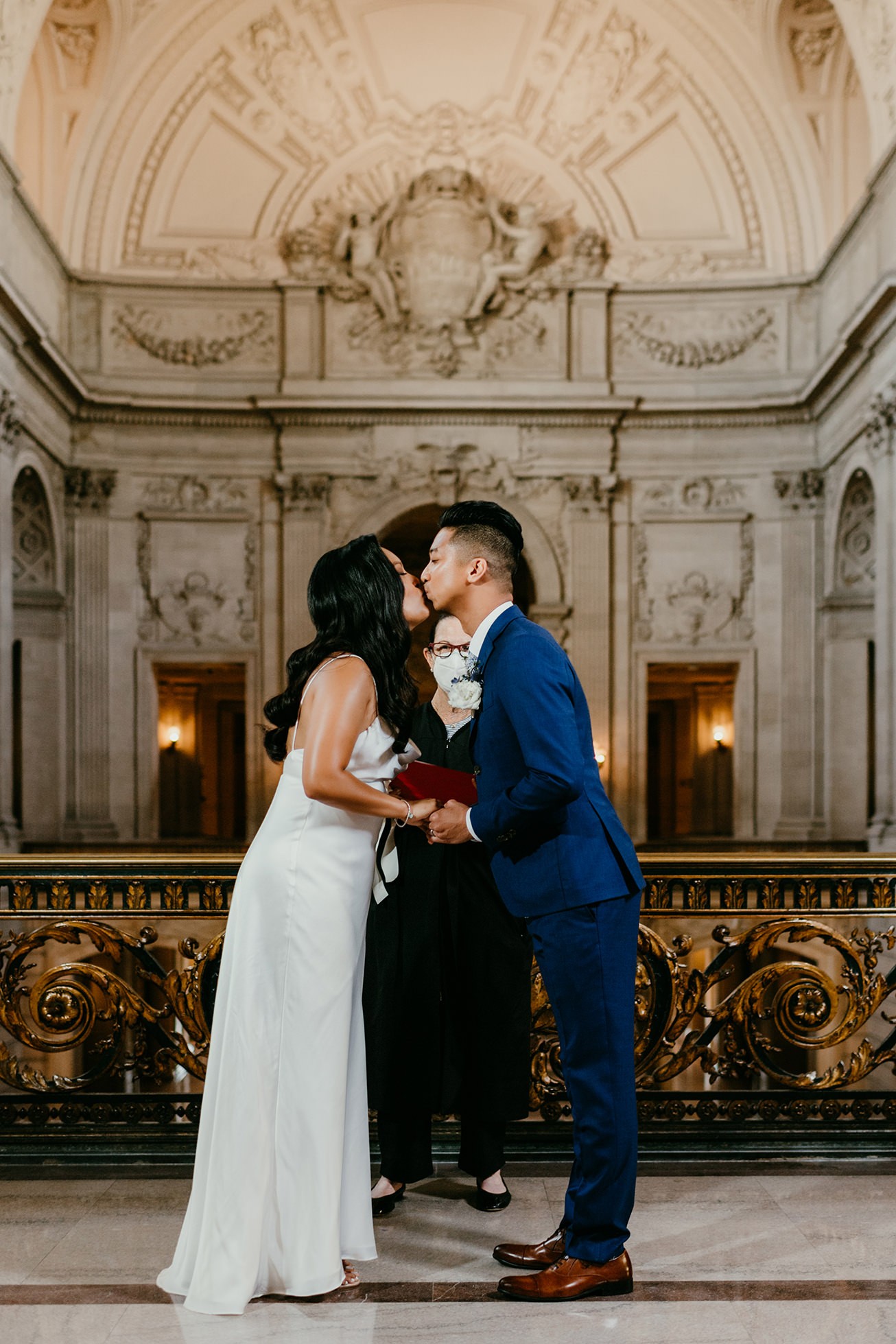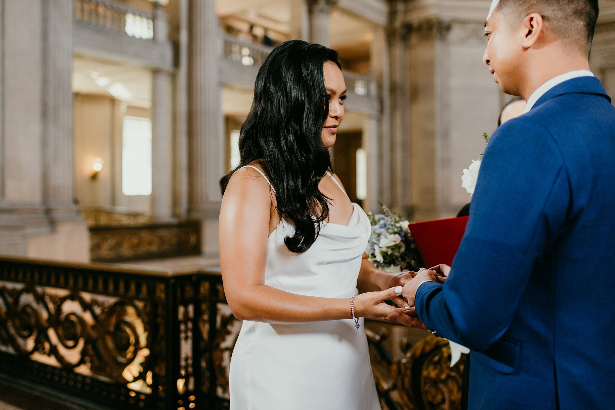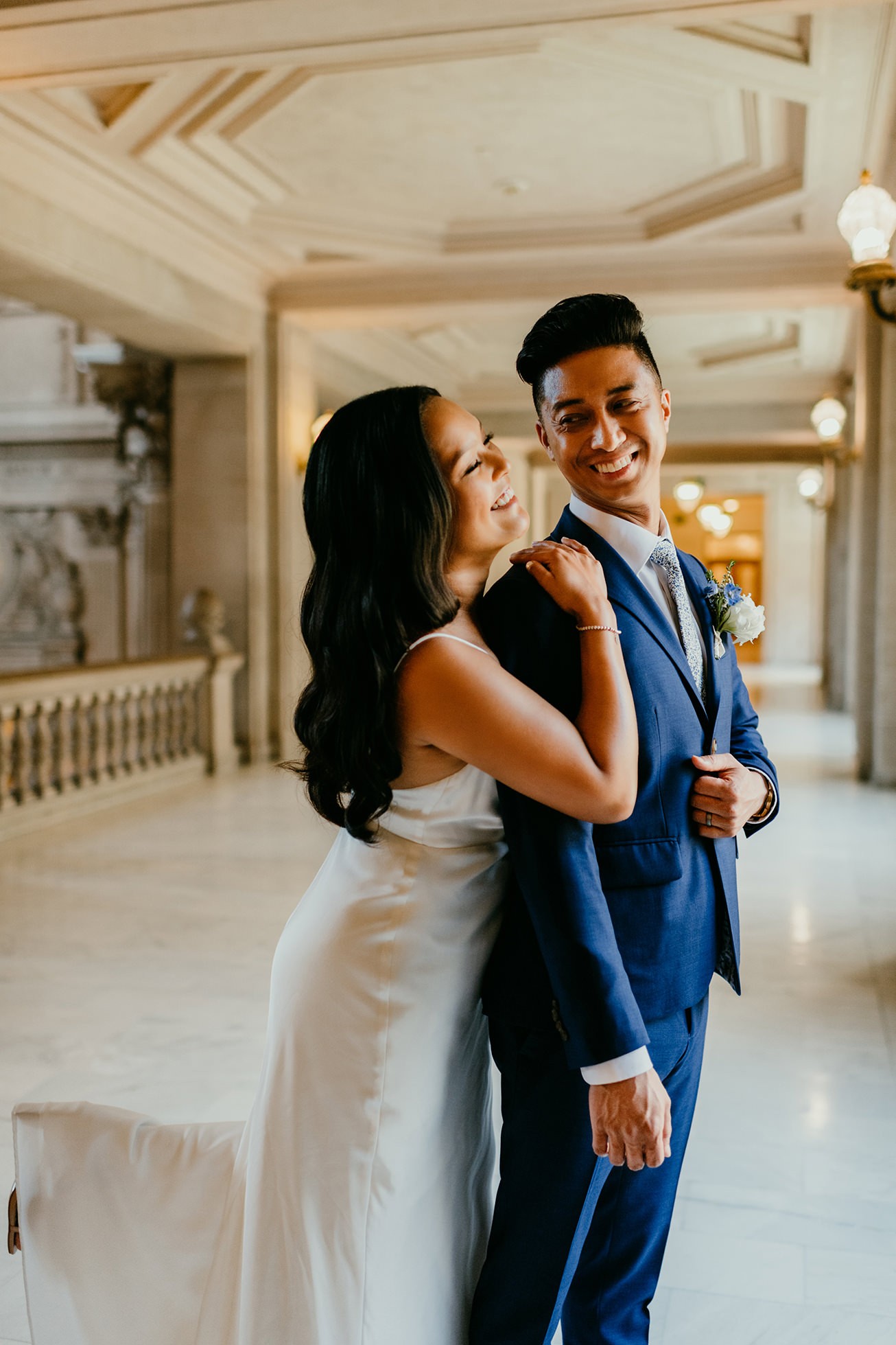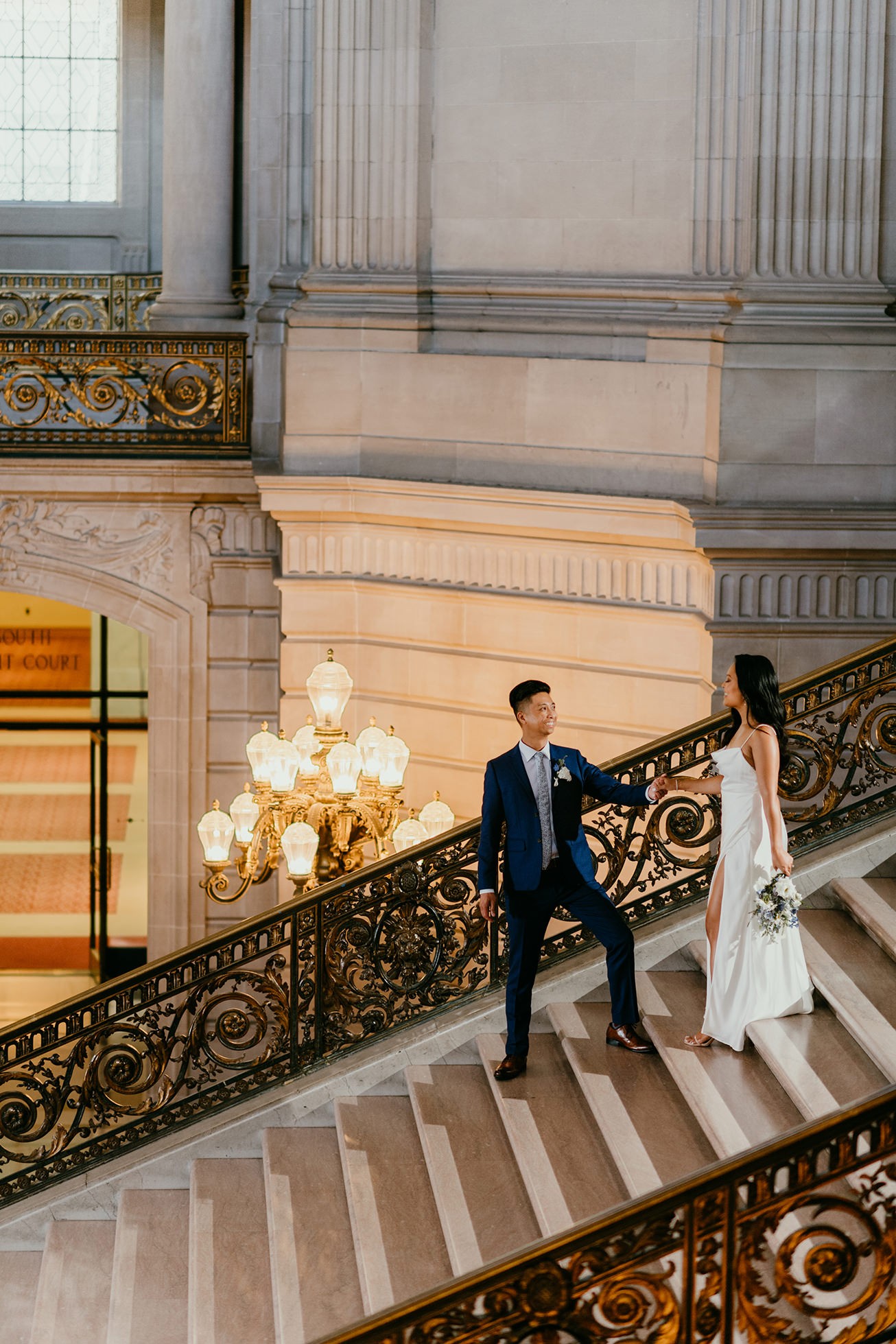 Their ceremony took place inside San Francisco City Hall, one of the most iconic elopement locations in California. The architecture, the light, the scale—it’s unmatched.