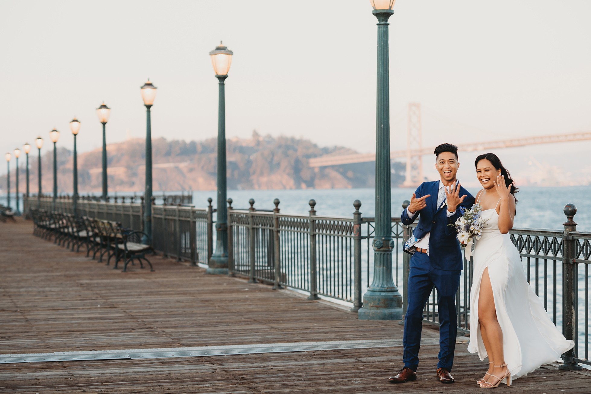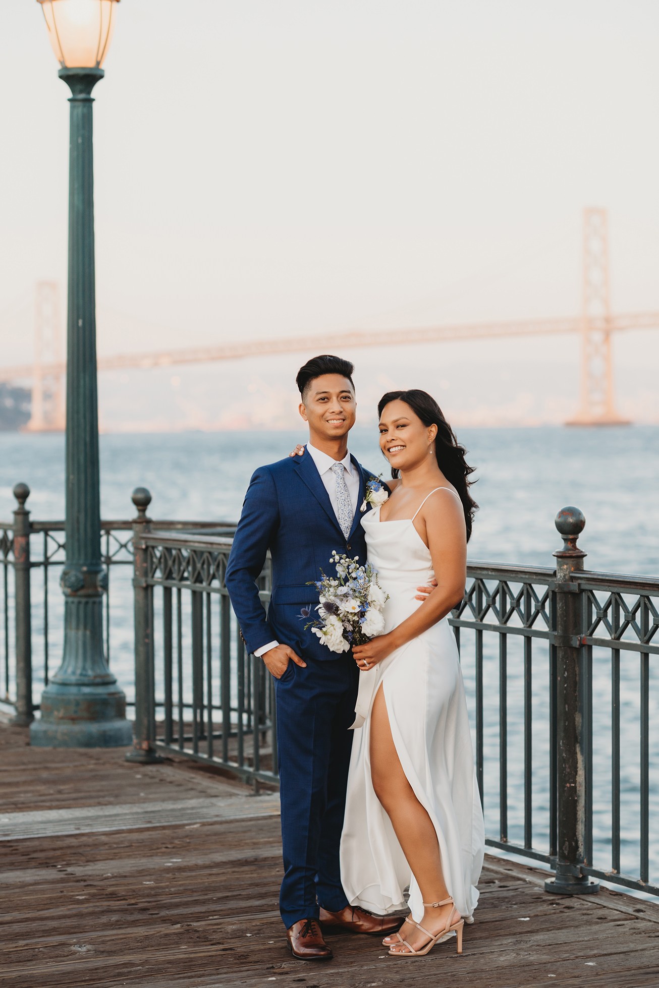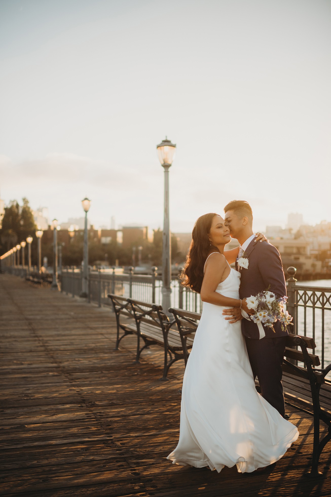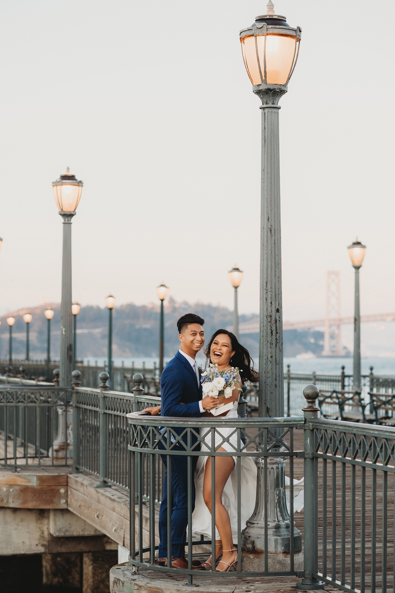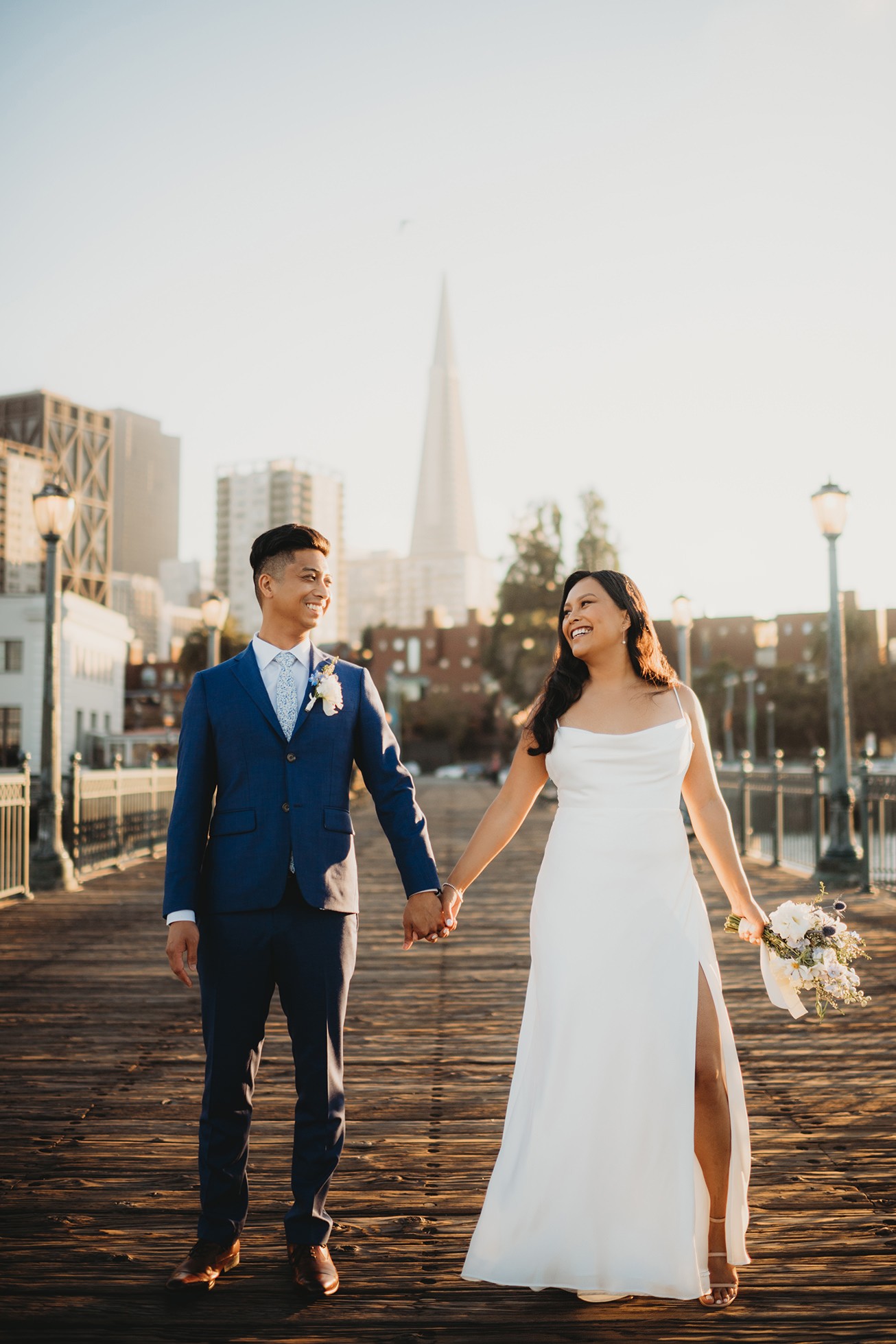 From there, we headed to the San Francisco Pier for sunset portraits. The light was warm, the city felt alive, and the whole pace of the day slowed down in the best way—just the two of them soaking it all in.