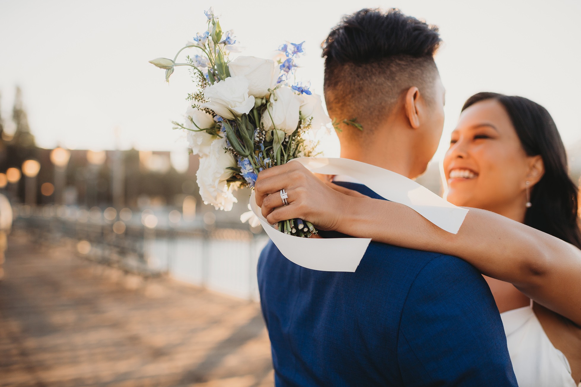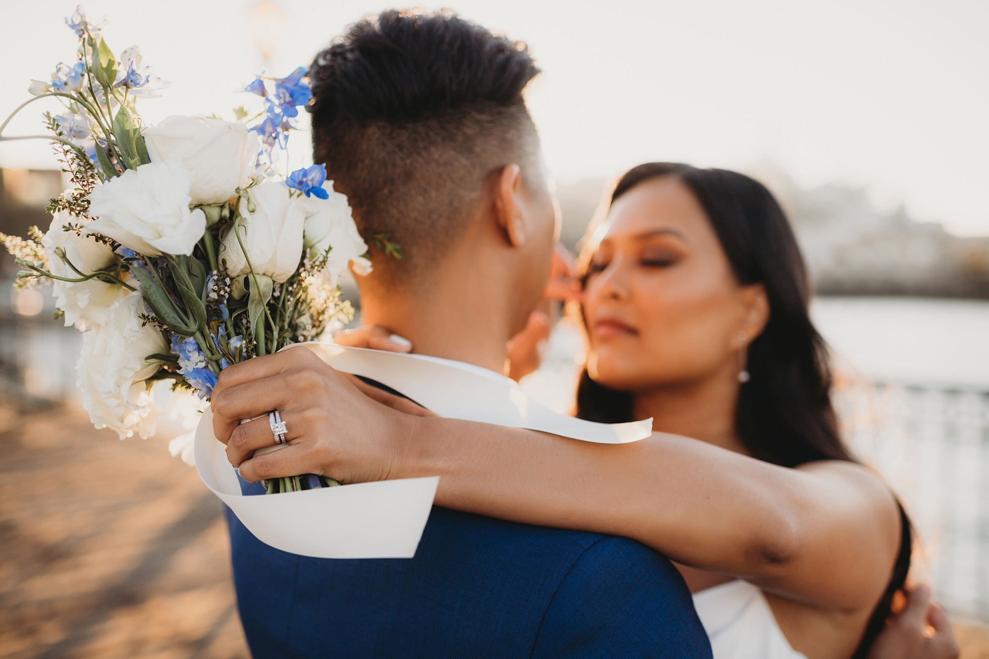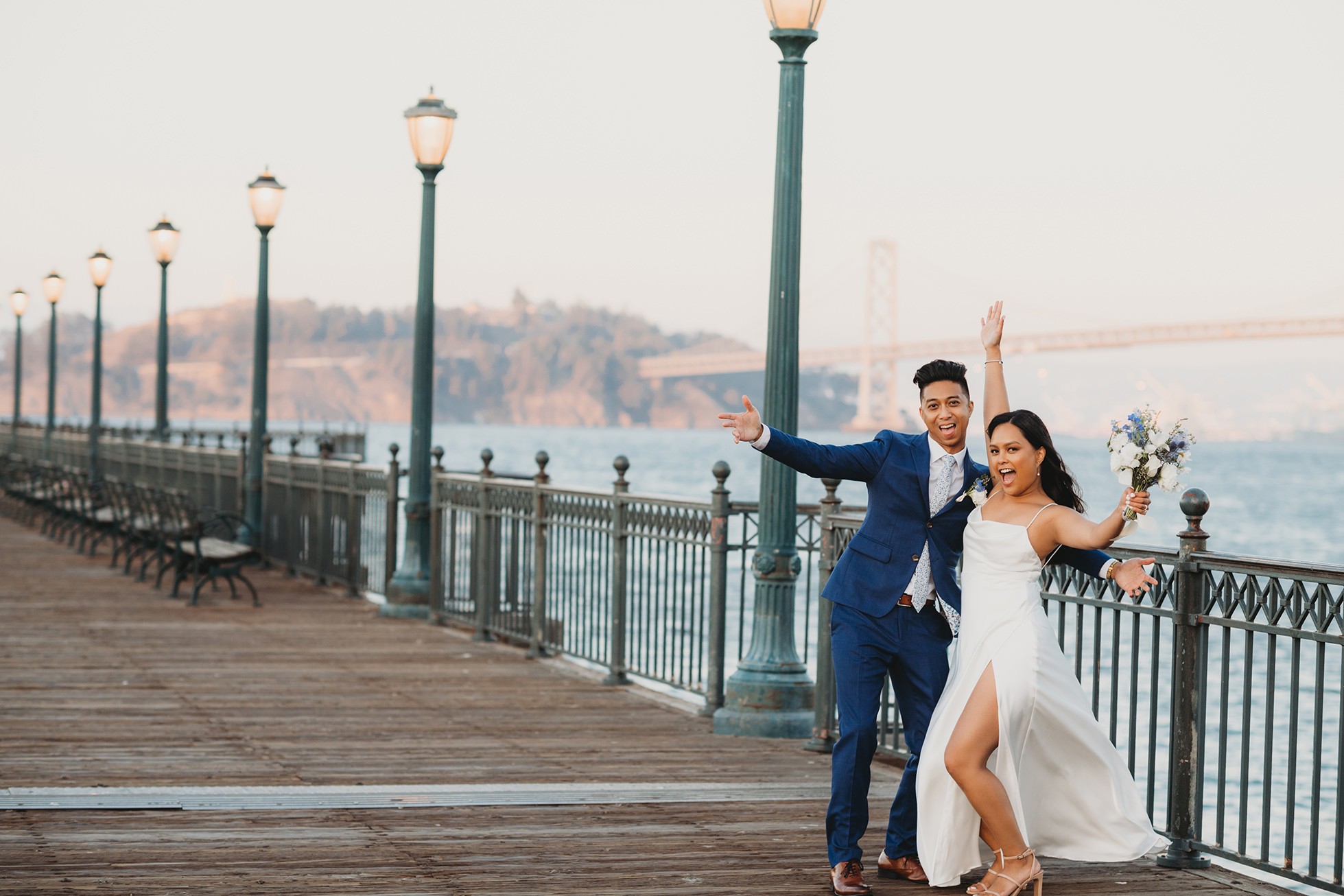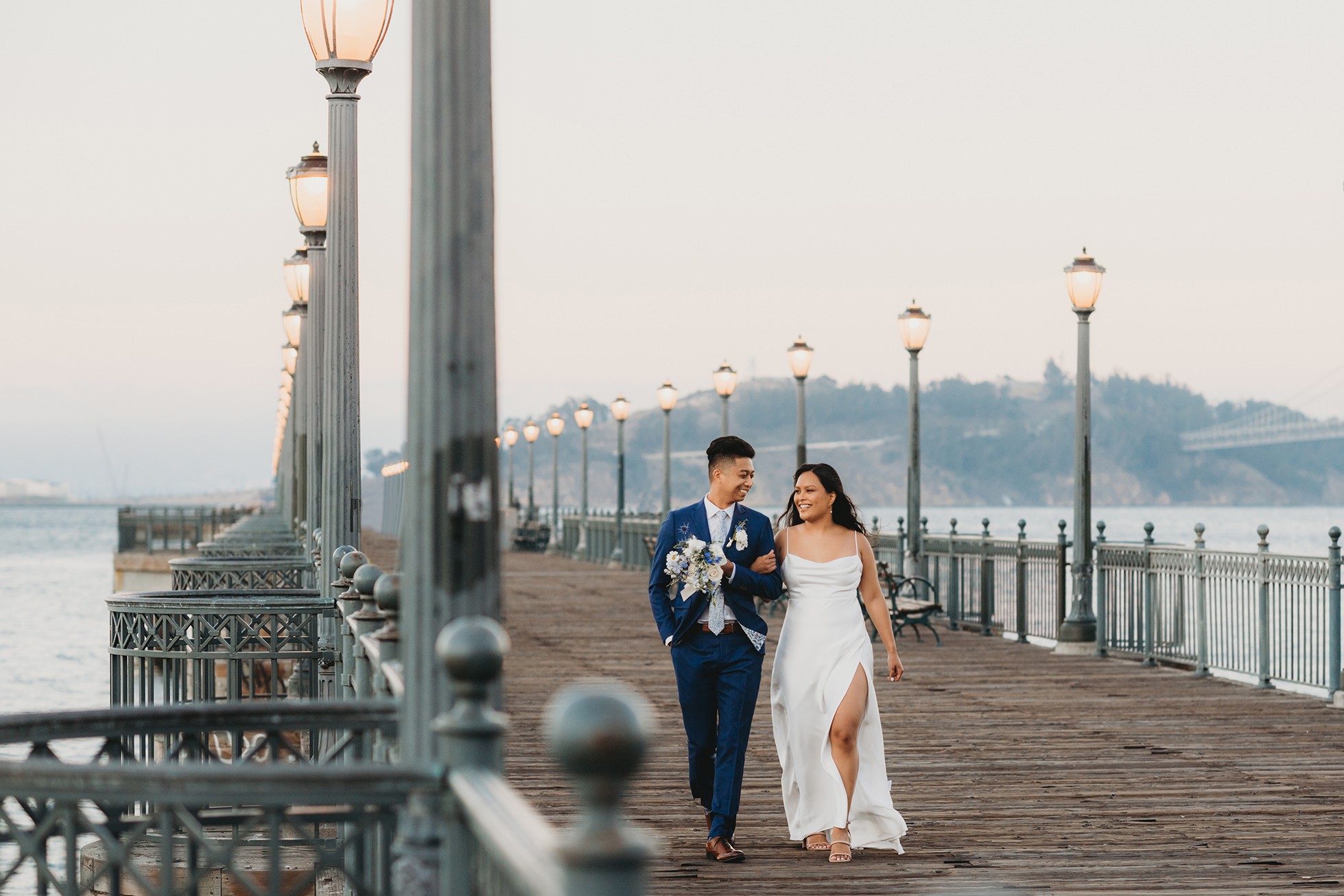 From there, we headed to the San Francisco Pier for sunset portraits. The light was warm, the city felt alive, and the whole pace of the day slowed down in the best way—just the two of them soaking it all in.