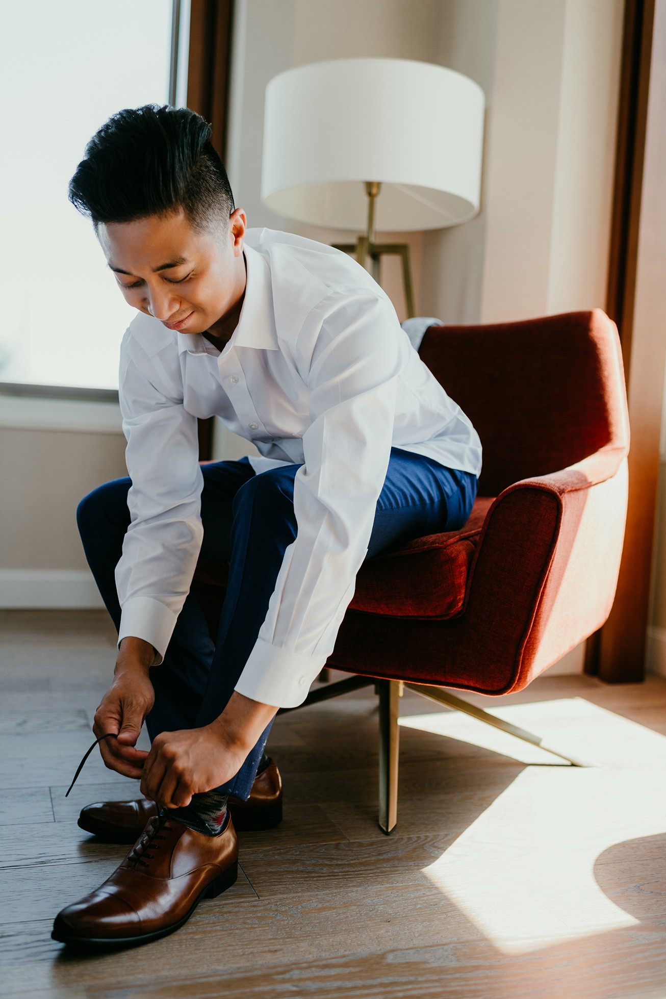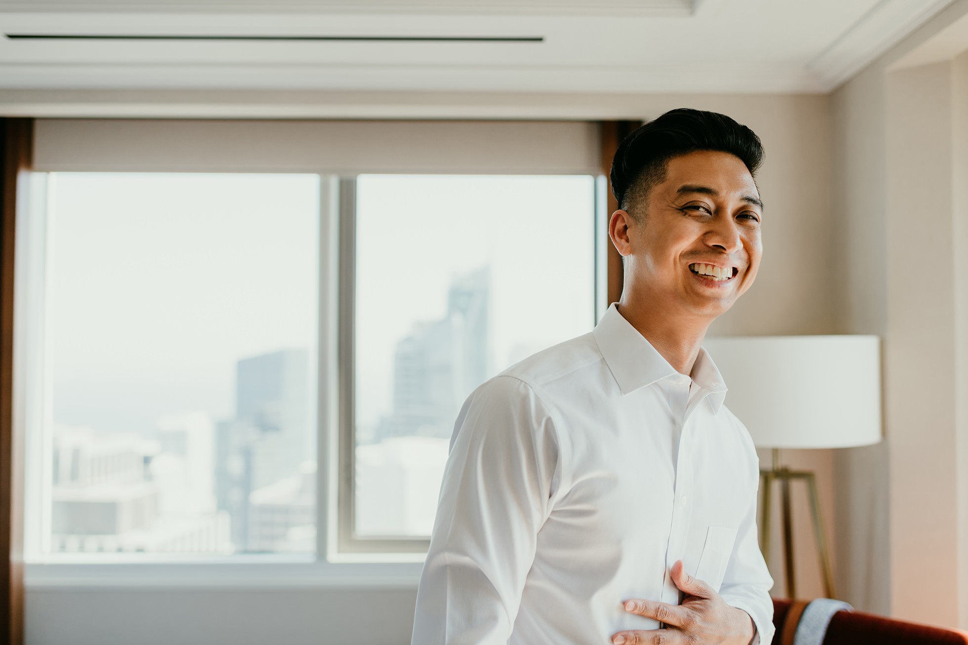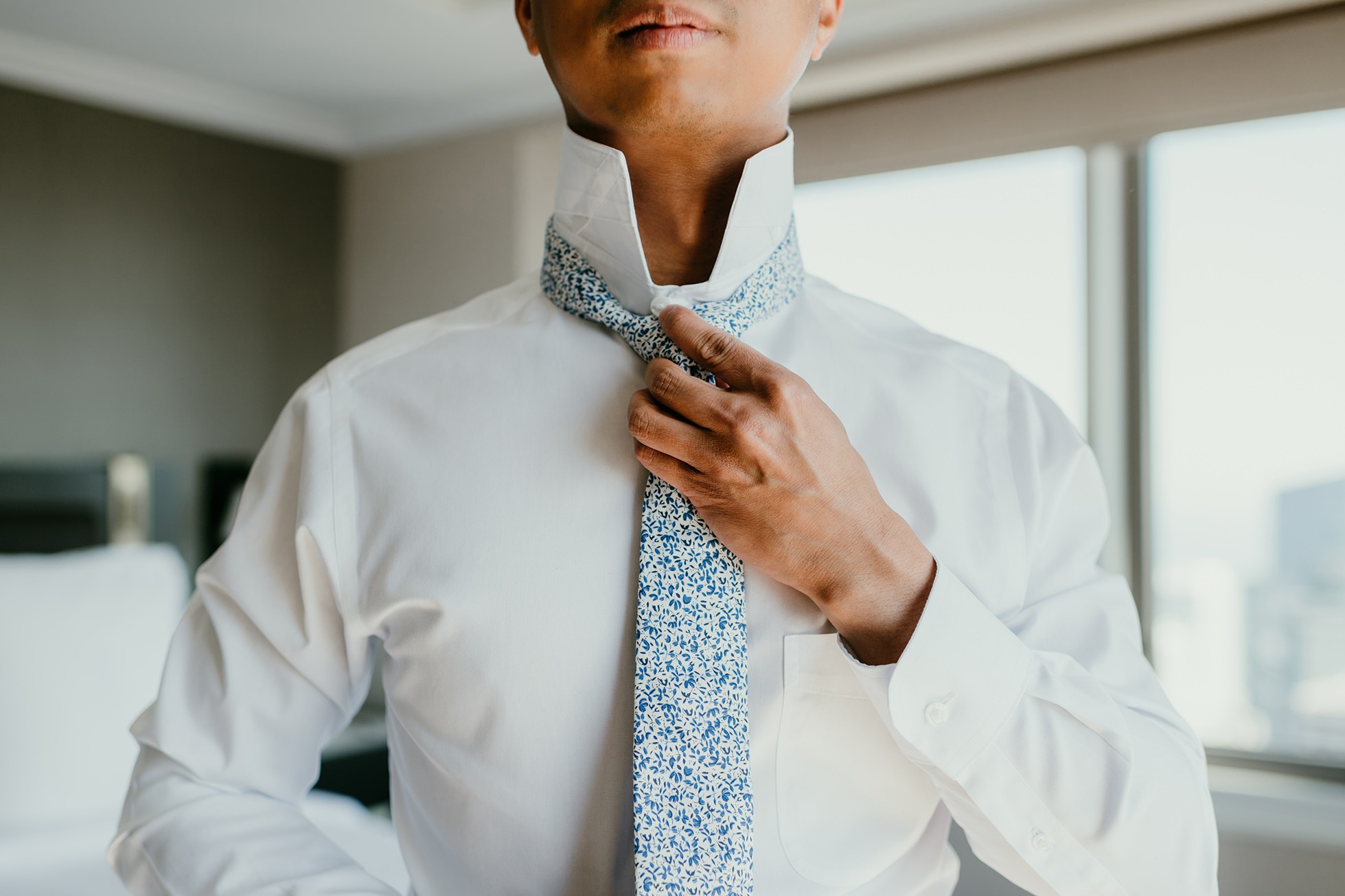 We started the day at their hotel in downtown San Francisco, capturing the quiet getting-ready moments before the city energy kicked in. Hotel getting-ready coverage is one of my favorite parts of an elopement because it sets the tone—clean, modern, and full of those in-between moments you don’t want to forget.