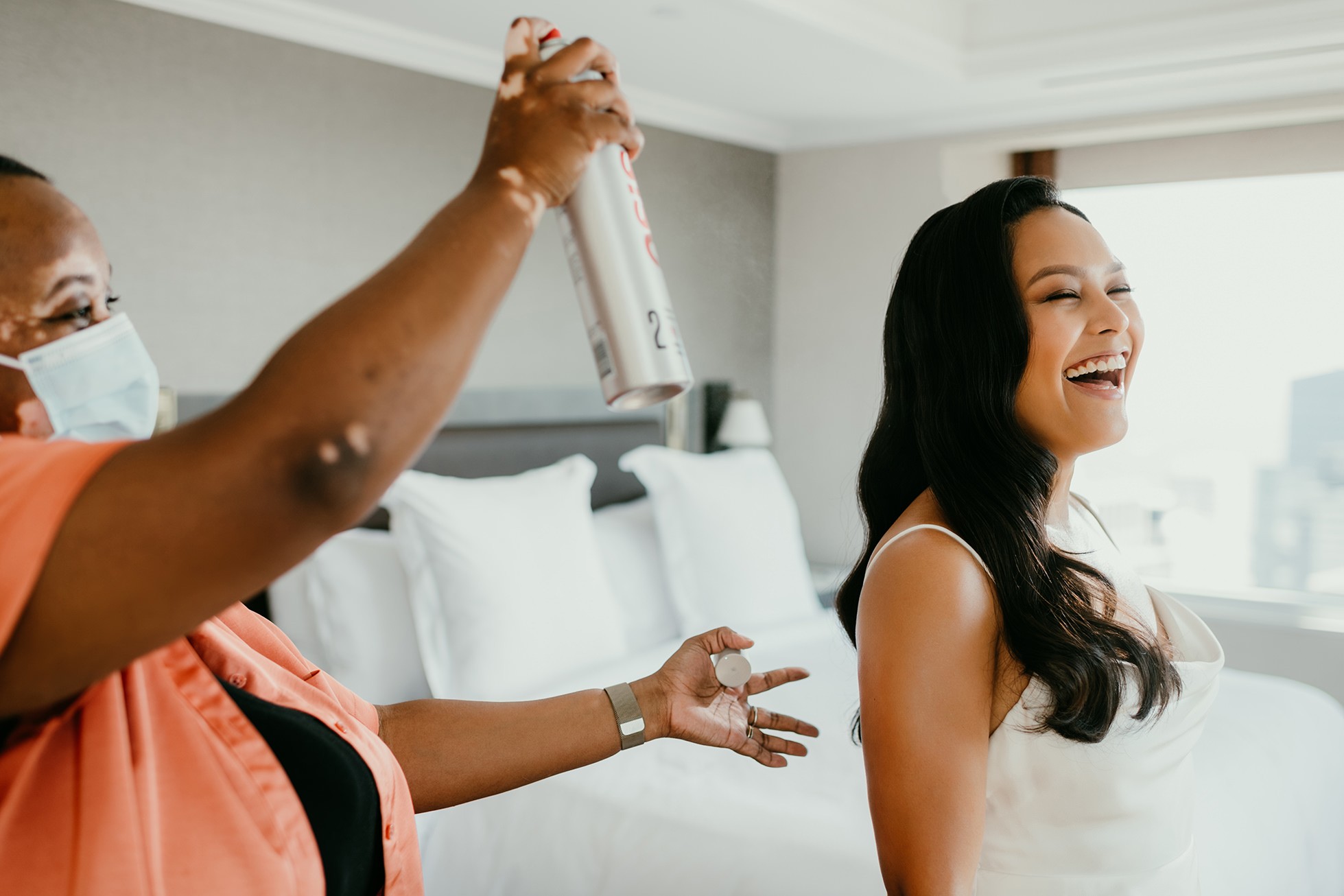 Getting ready at a downtown San Francisco hotel